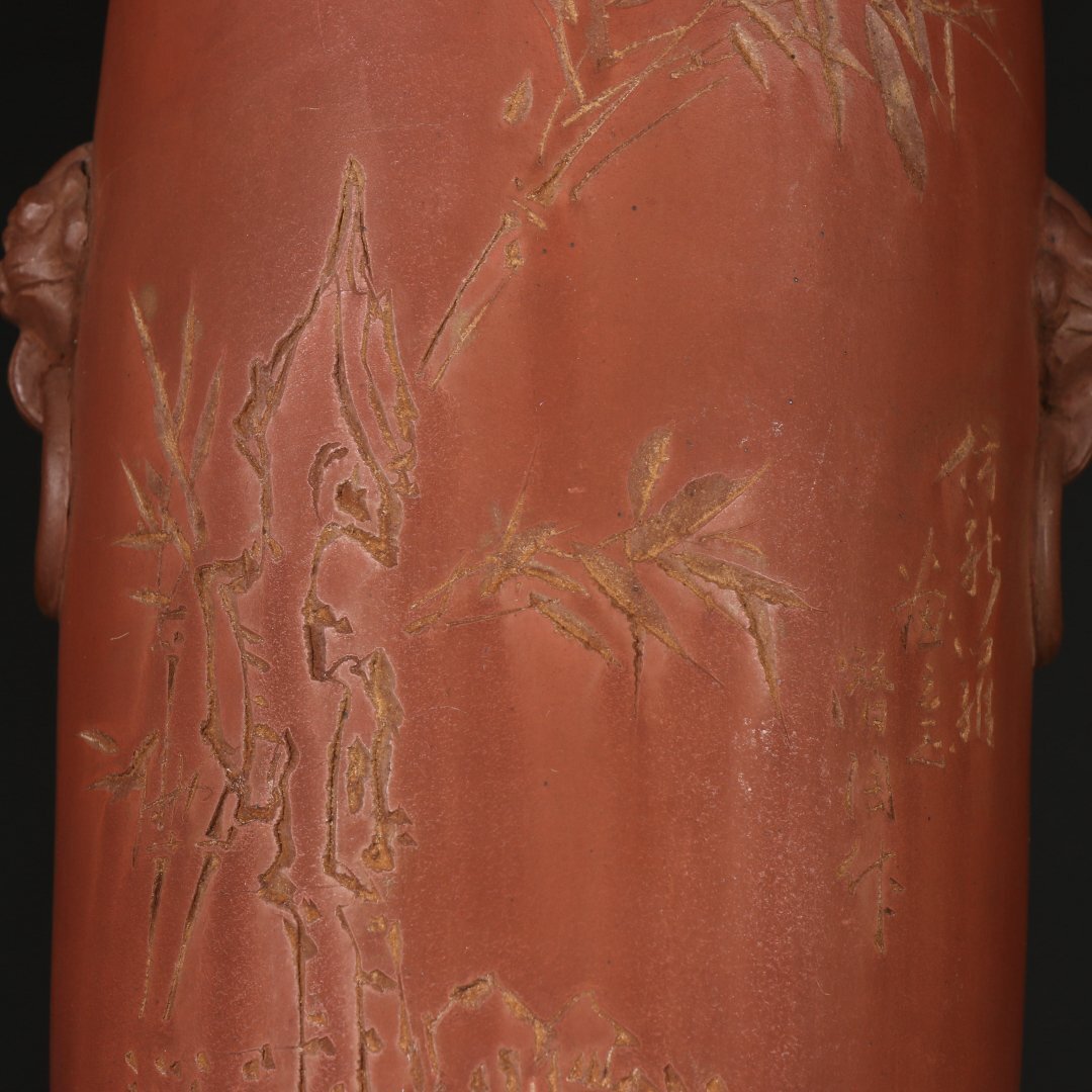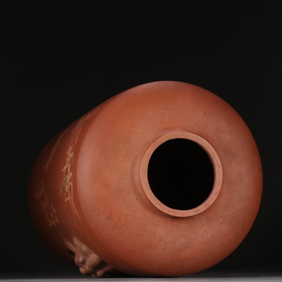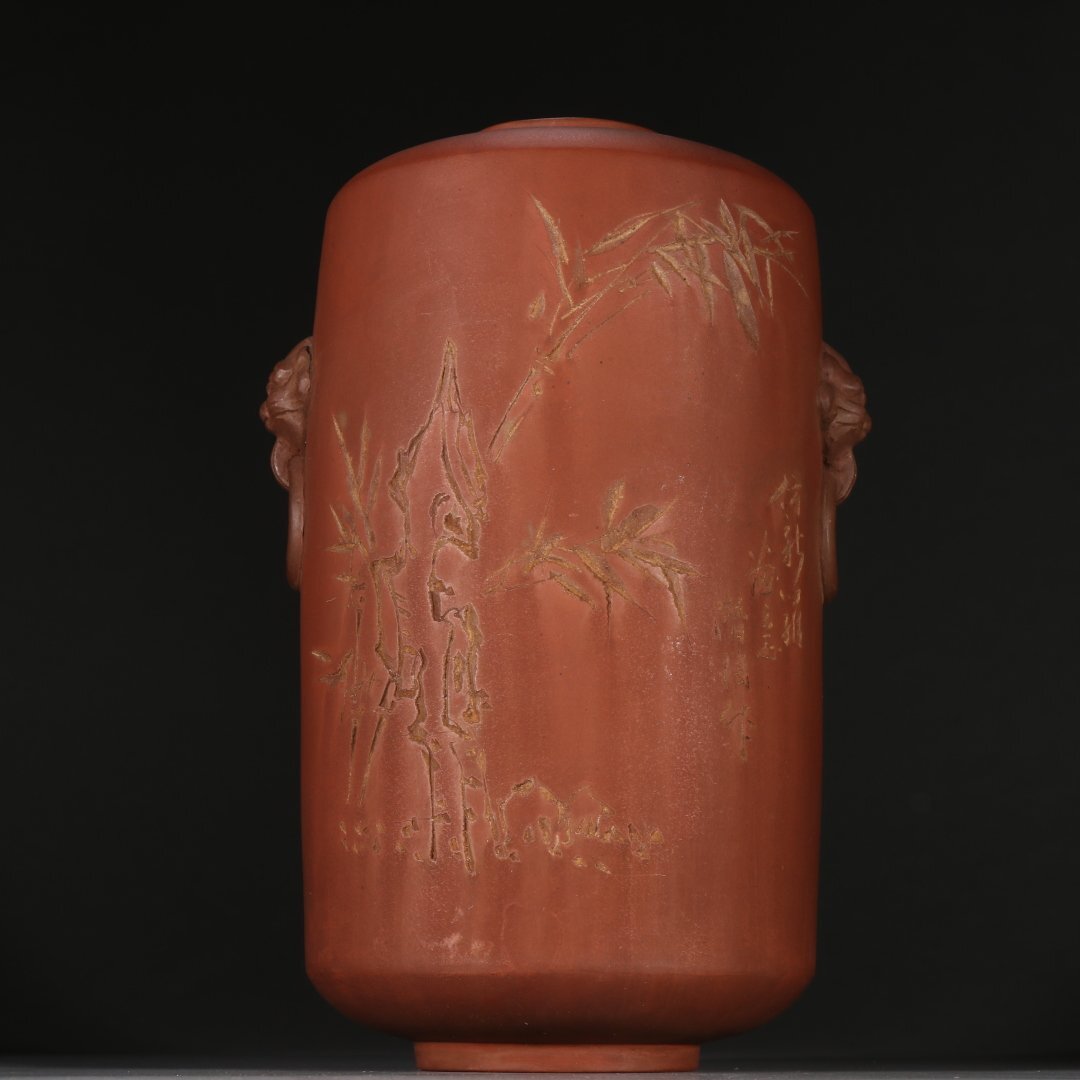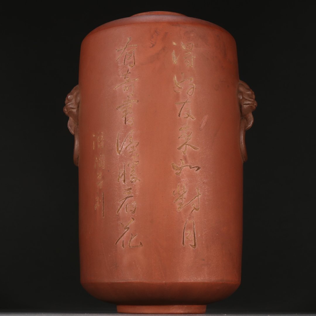 【安】清時代 潜陶製款 竹節漢詩紋罐一対 宜興紫砂 極細工 古置物 古擺件 中国古美術 時代物 古董品 313 サイズ(約寸) |
