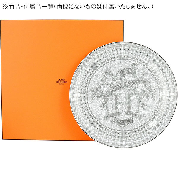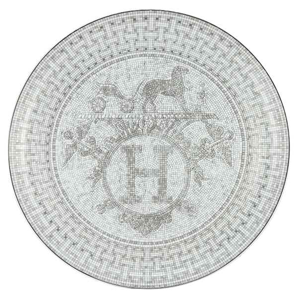| スタッフコメント | エルメス定番のテーブルウェアシリーズ【モザイク24】。フォーブル・サントノーレ通り24番地の歴史あるエルメスのブティックの床を飾るモザイク装飾を幾何学模様にデザインした人気のシリーズは、ギフトやプレゼントにもおすすめの逸品です。 |