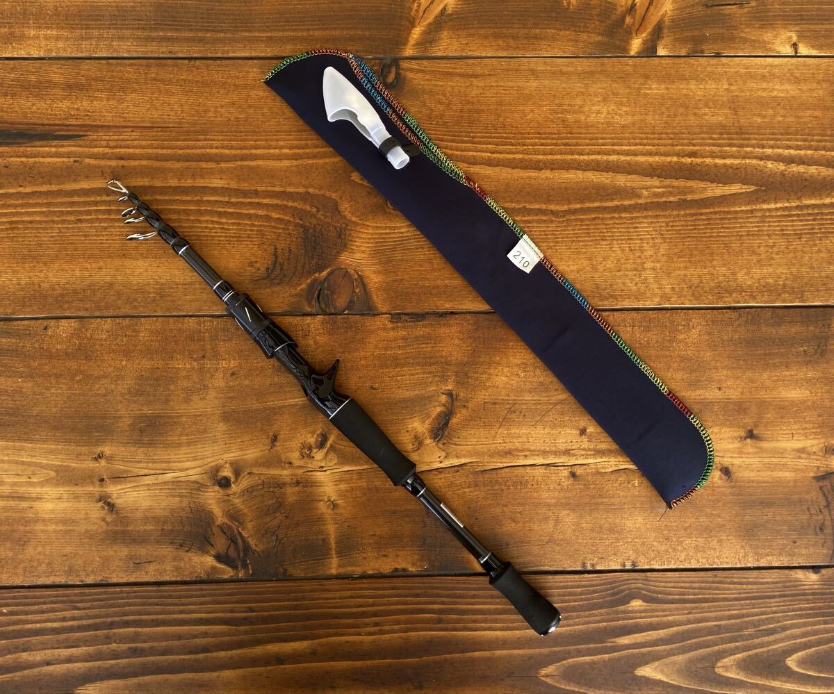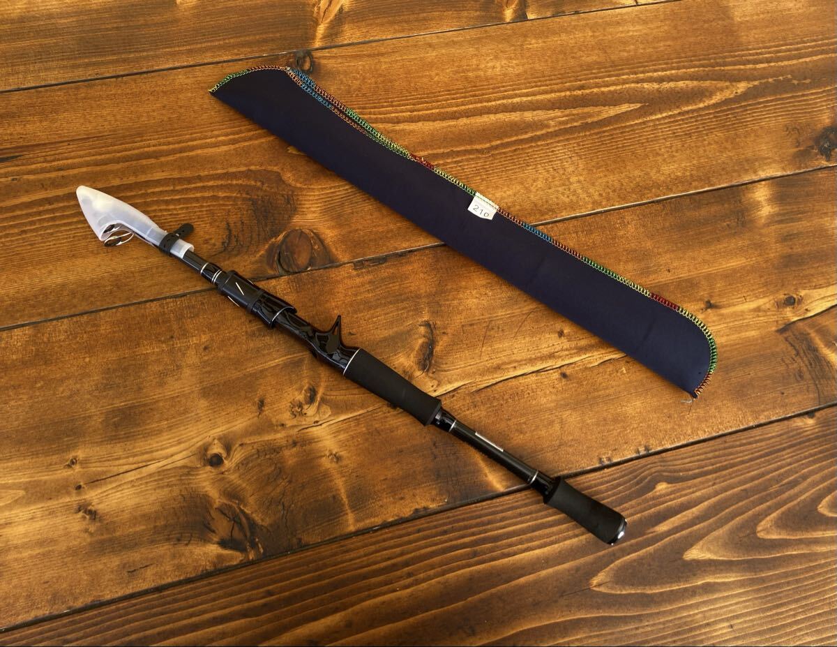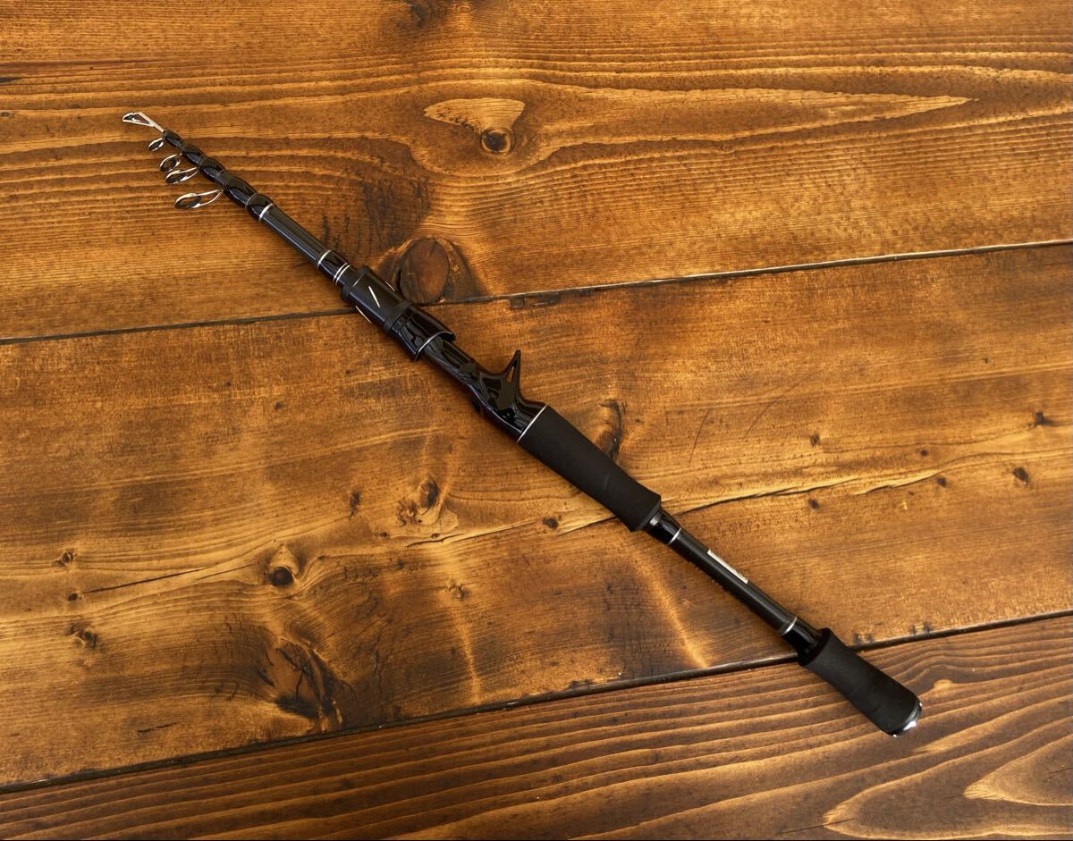 ベイトテレスコロッドです。バス釣り初心者の方でも扱いやすいレングスかと思います。バス釣りのみならずトラウトやサビキ、投げ釣り、ライトショアジギング等バーサタイルに使えると思います。仕舞寸法55cmとバイクや電車で釣りに行く際もリュック等に仕舞えて携帯性バツグンです!
