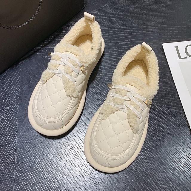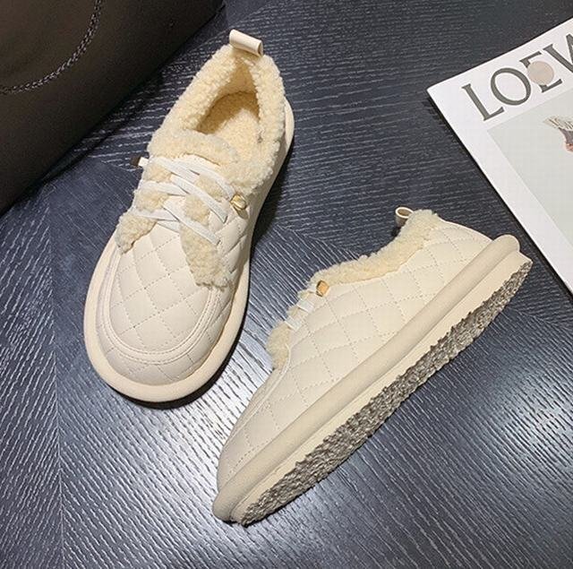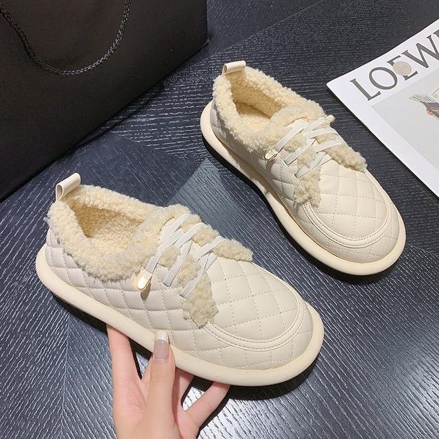 モカシン ムートンパンプス ボアシューズ キルディング ファーシューズ レディース 裏起毛 フラットシューズ 防寒 靴 米色24.5 cm