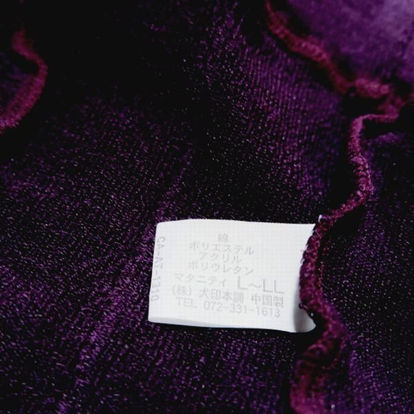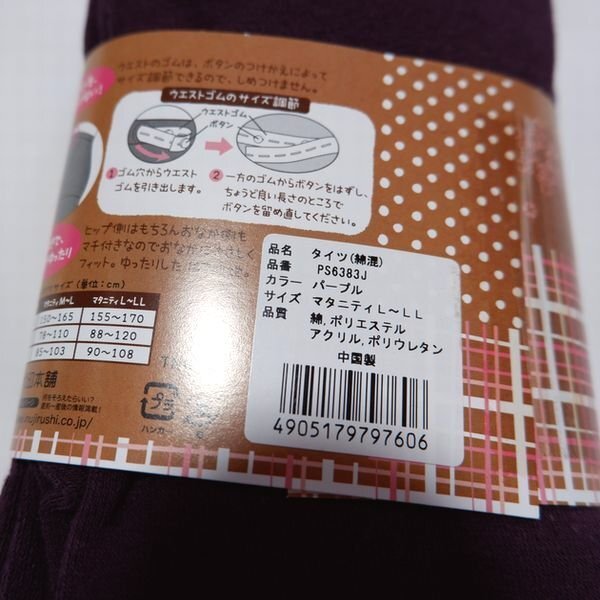 送料無料 犬印 L/LLマタニティ マチ付 綿混あったかタイツ 冷予防 パープル PS6383J