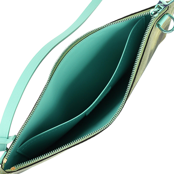 | カラー | [外側] マルチカラー [内側・トリミング] テュルコワーズ(ライトブルー) [金具] ゴールド × メタリックブルー |