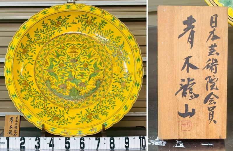 ●発送不可!青木龍山 作 大明嘉靖年製写 特大黄地花鳥文大皿 共箱付 日本芸術院会員 色絵磁器 中国 名工作品 人間国宝級 色絵 飾皿 直接引き取り限定 ■サイズ:横幅 cm/縦幅 cm/高さ cm ※素人寸法の為、若干の誤差はご了承ください。 撮影者【F】 ■状態につきましては経年に伴うスレ・汚れ・小キズ などが見られます。 ※その他の細かな状態は写真にてご確認・ご了承の上 ご入札くださいませ。 ●こちらの商品などは時代物や古いお品・骨董品となり ますので、細かな状態を気にされる方・神経質な方の ご入札はご遠慮くださいませ。【IZ】 |