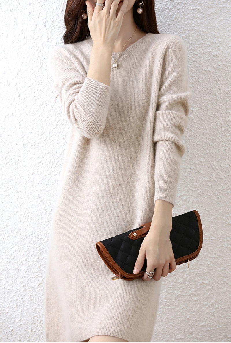 同梱1万円送料無料ニットワンピース レディース 長袖 ワンピース 着痩せ ニット 膝丈ワンピース オシャレ 気質 大人 きれいめ ~ 白