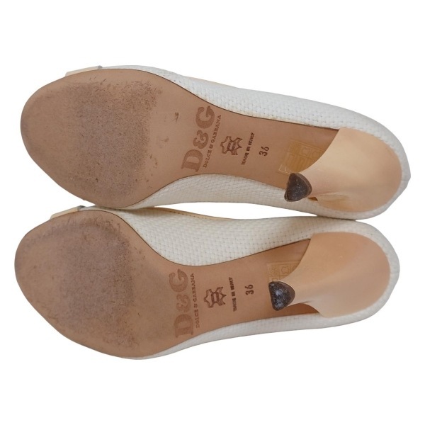 ドルチェアンドガッバーナ DOLCE&GABBANA パンプス 36 - レザー 白×ベージュ レディース オープントゥ 靴