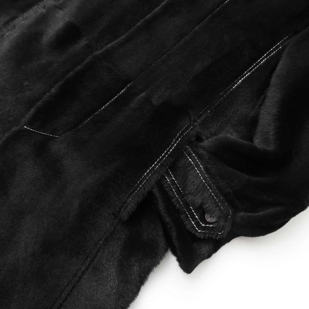 ムートン素材の柔軟性はそのままに、毛足は非常に短く光沢感が強いため、ファーの表情はハラコやカーフヘアに近くなっております。
