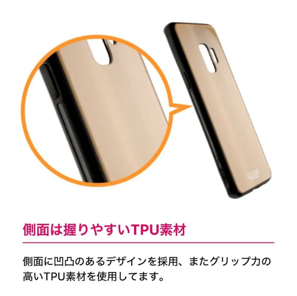端末との一体感が高く、背面にガラス素材を採用することで他にはないデザイン性と高級感を演出しています。