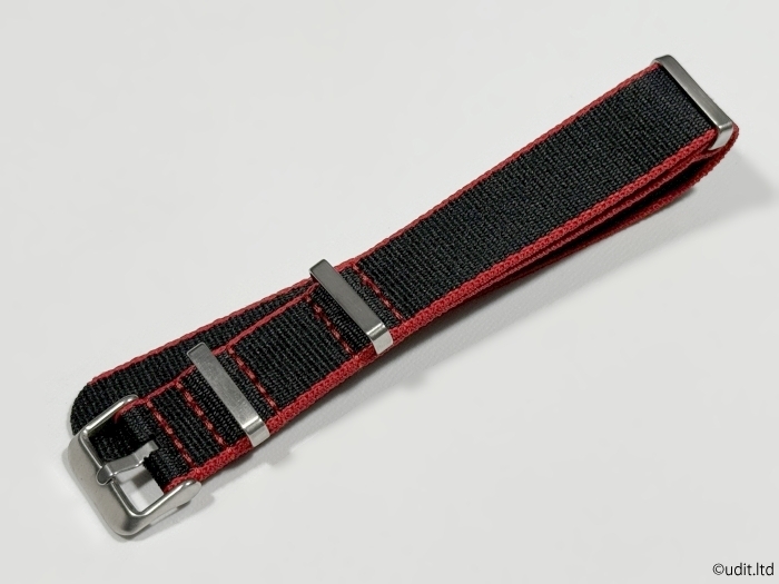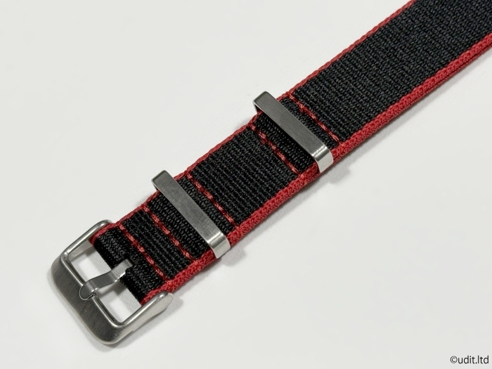 ラグ幅20mm NATOベルト ストラップ ブラック レッド シルバー尾錠 ベーシック ナイロンファブリック 腕時計ベルト 時計用バンド