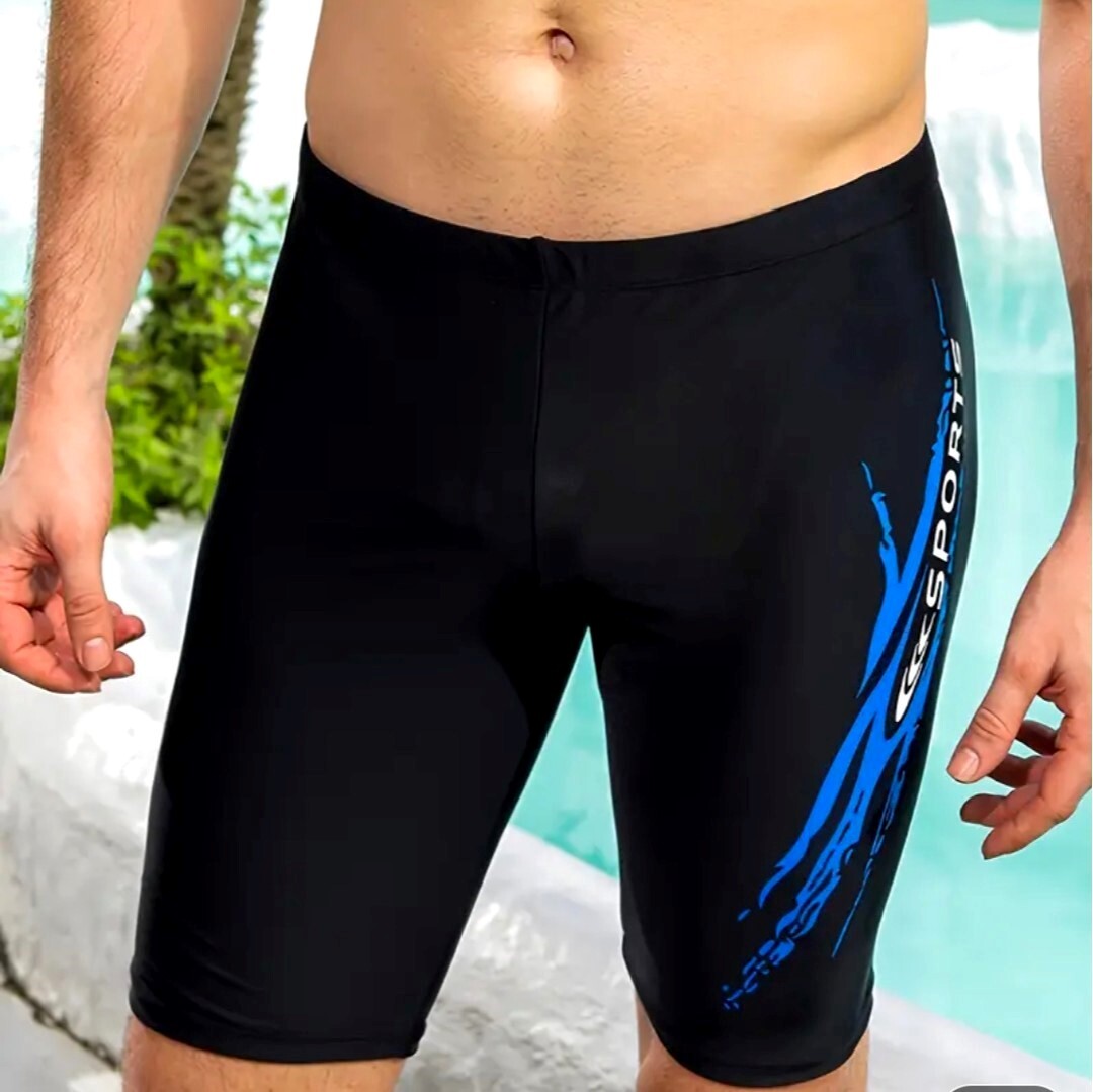p6★新品 Lサイズ★送料無料★シンプルロゴ ハーフ競泳用水着 メンズ スイムウエア ジム プール ブラック黒色