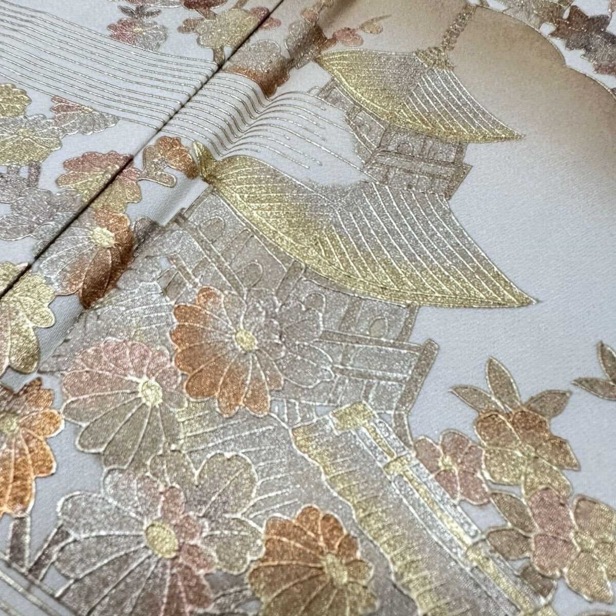 付下げ 単衣仕立て 箔押し 上品なデザイン 着物 正絹 W-5495