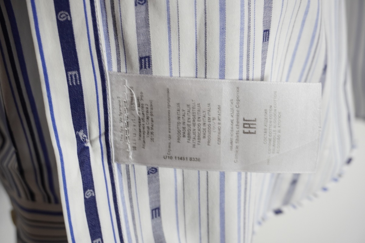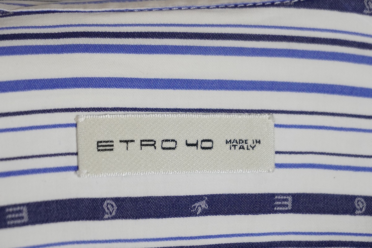 国内正規 ETRO エトロ 総柄 ストライプ 長袖 シャツ イタリア製 201-11451-8336 青 白 ブルー ホワイト サイズ40 本物です。