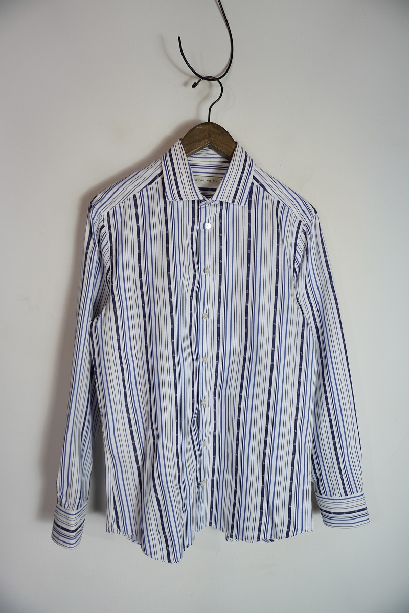 国内正規 ETRO エトロ 総柄 ストライプ 長袖 シャツ イタリア製 201-11451-8336 青 白 ブルー ホワイト サイズ40 本物 601P★4