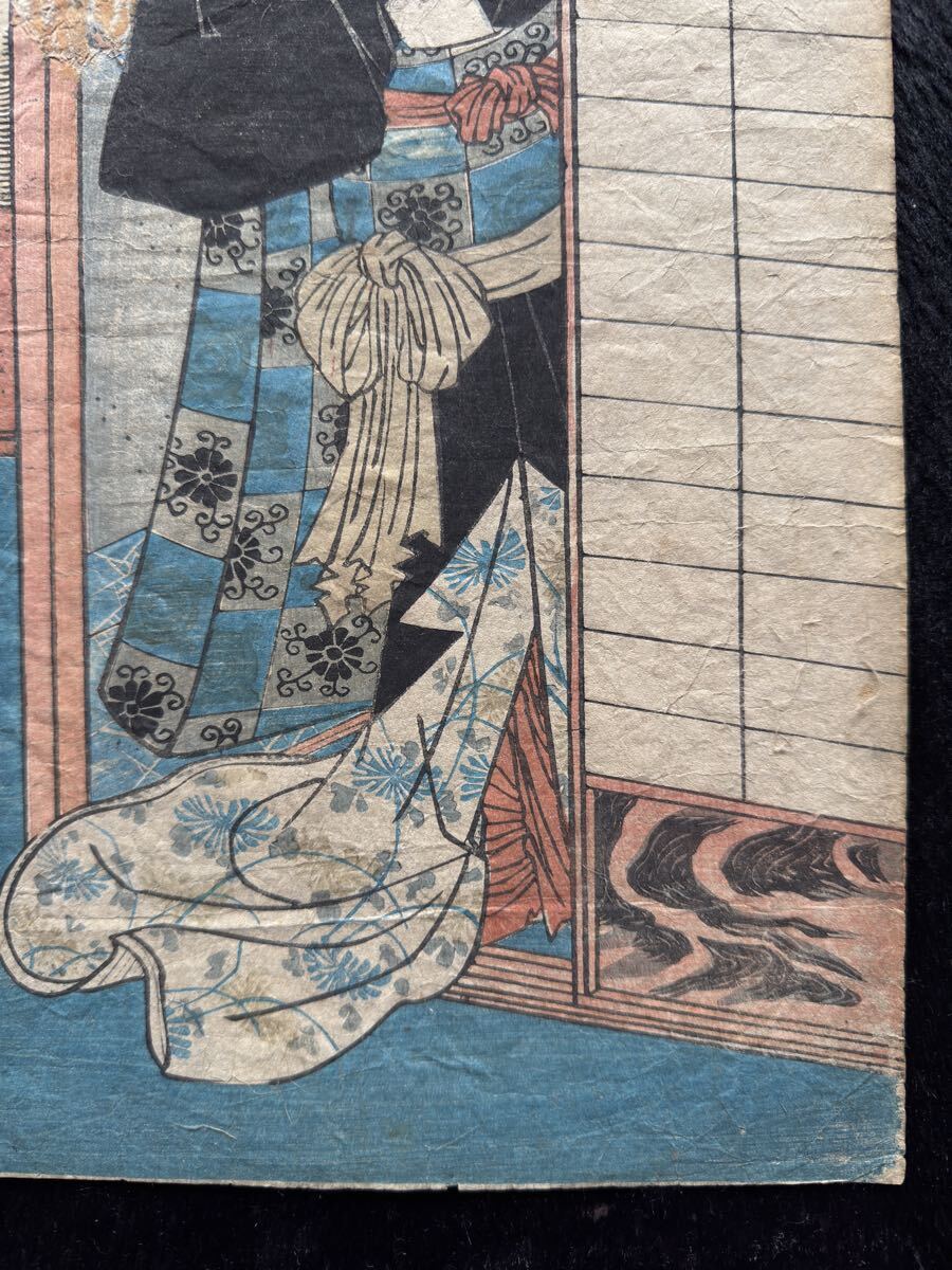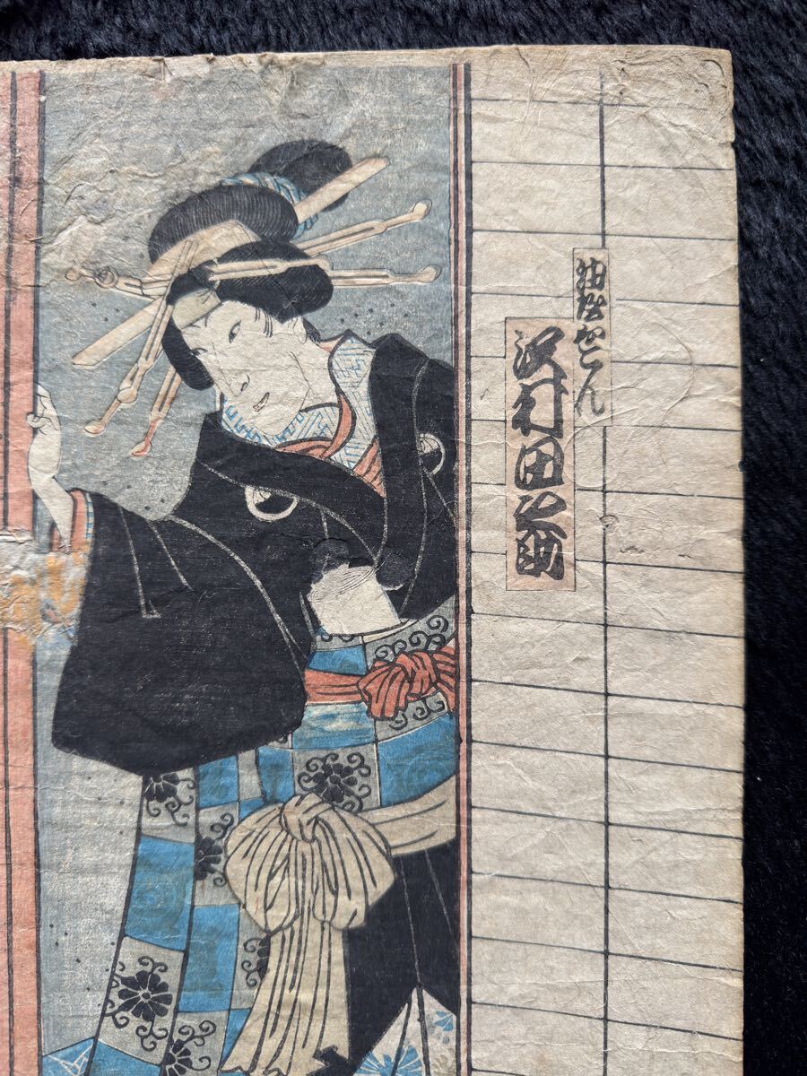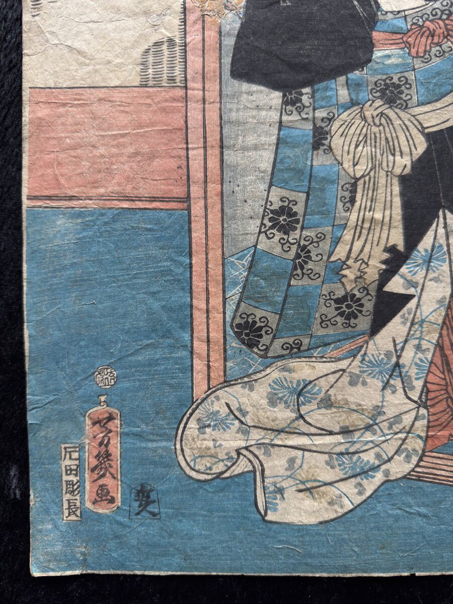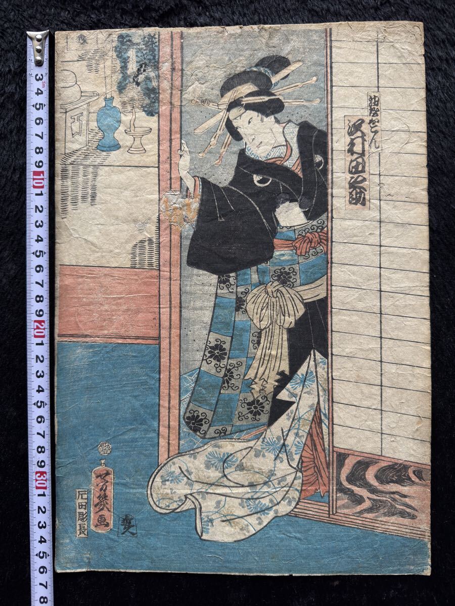 江戸期/真作 落合芳幾「沢村田之助」本物浮世絵木版画 役者絵 歌舞伎絵 芝居絵 錦絵 大判 裏打ち