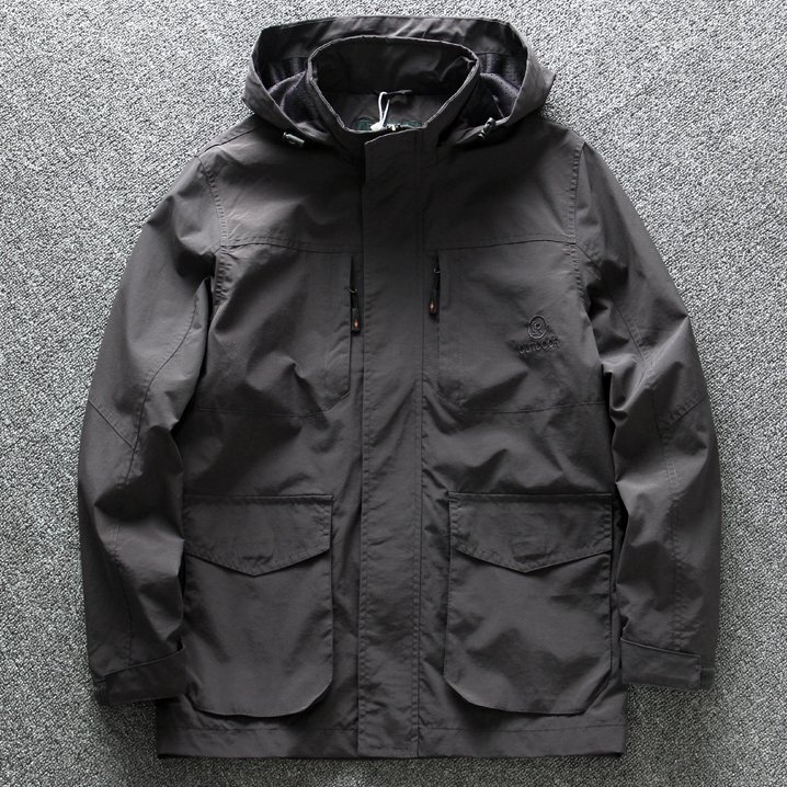 新品 アウター メンズ マウンテンパーカー ウィンドブレーカー ジャケット ジャンパー カジュアル 撥水 防風 ライトアウター マンパ 無地 春 春服 秋 秋服 取り外し可能なフード アウトドアジャケット/グレーT6137-4XL