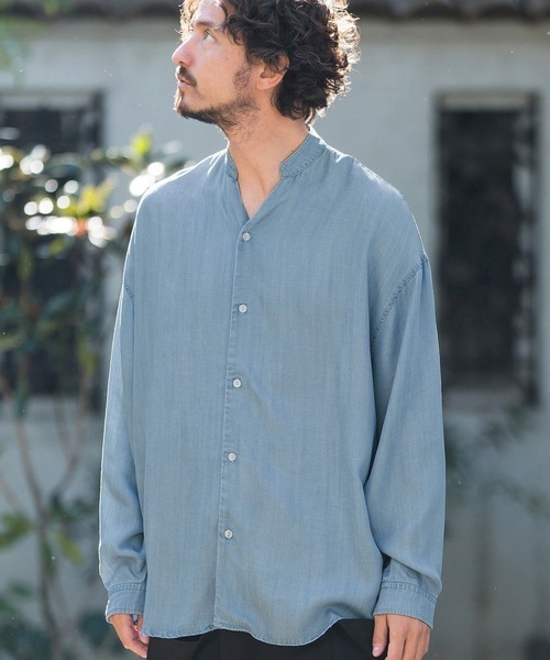 参考商品名:ms5519-Silky Denim Band Collar Skipper Shirts シャツ