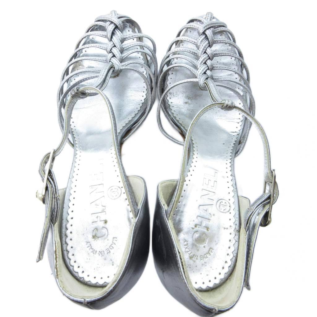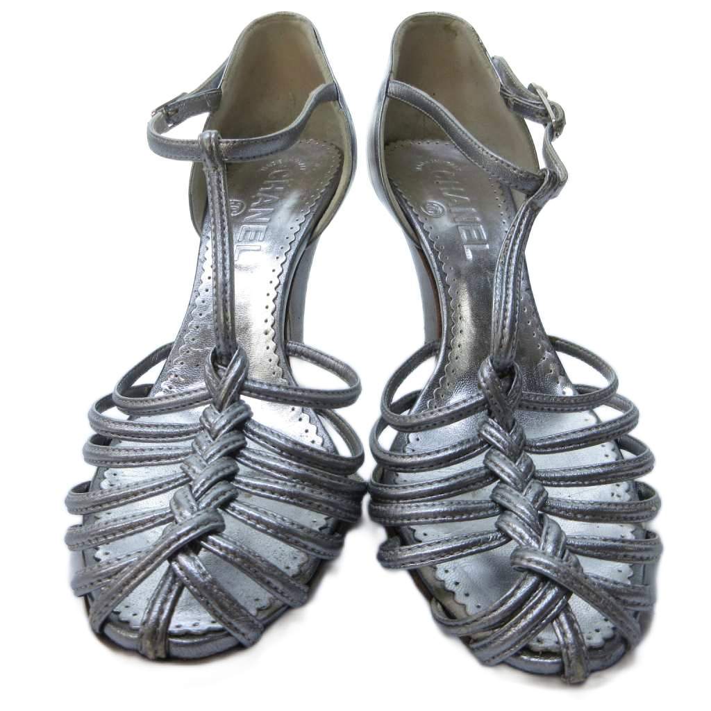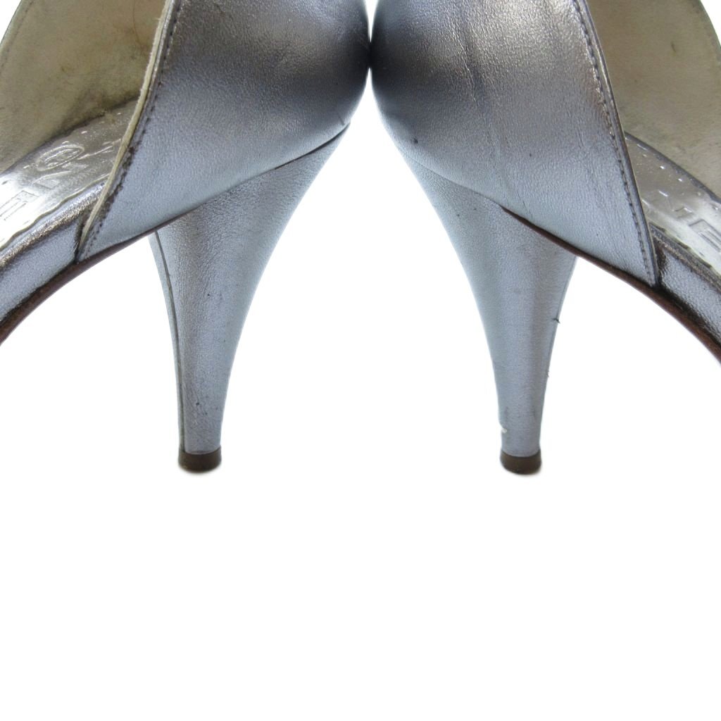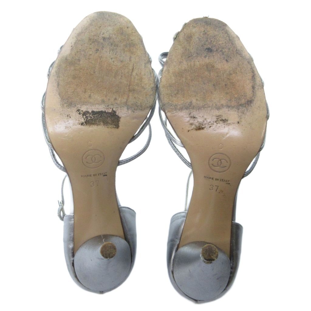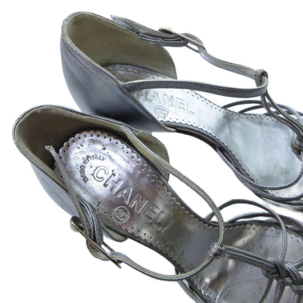 シャネル CHANEL アンクルストラップ サンダル ミュール シルバー 37 約24cm IBO81