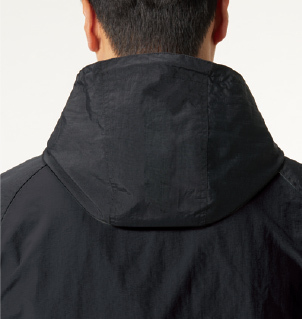 大型スピンドル付きのフード(裏地メッシュ)、両脇ウォームポケット・フロントポケット・雨蓋付きの袖ポケットなど、アウトフィールドのワークシーンに於いても実用的な機能性が備わっています。