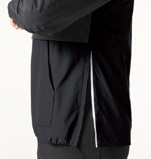 裾のドローコードを絞れば冷気の侵入をシャットアウトでき、また脇サイドに装備されたジップがスムーズな着脱サポートと同時に内側の蒸れを防ぐ通気にも役立ちます。秋冬のみならず肌寒い春先の季節など幅広いシーズンでご着用いただけるアイテムです。