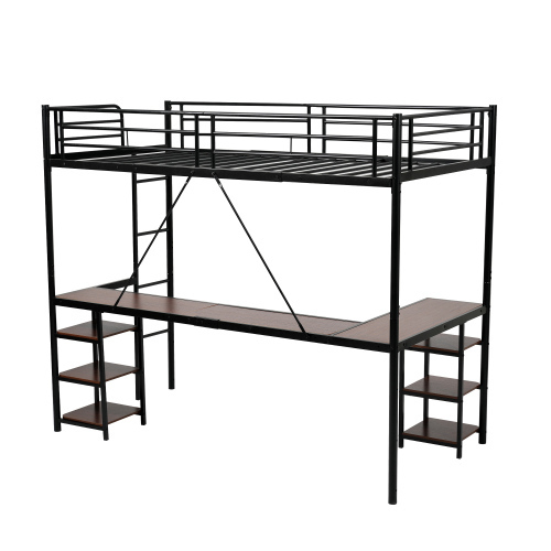 ロフトベッド パイプベッド シングル デスク付き 収納棚 ハシゴ付き 左右入れ替え可能 ロフトベッド 収納 大人 一人暮らし 子供ベ KU978