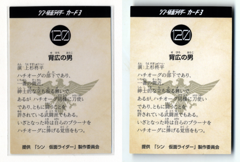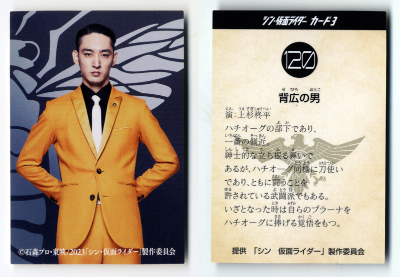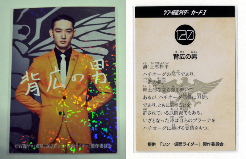 | ◆防水対策 厚紙補強 非売品 №120番 背広の男(上杉柊平)2種類セット (パラレルカード・俳優サイン入り版) (ノーマル版) カルビー シン・仮面ライダーカード劇場版 入場者特典第6弾 即決 送料無料 | |