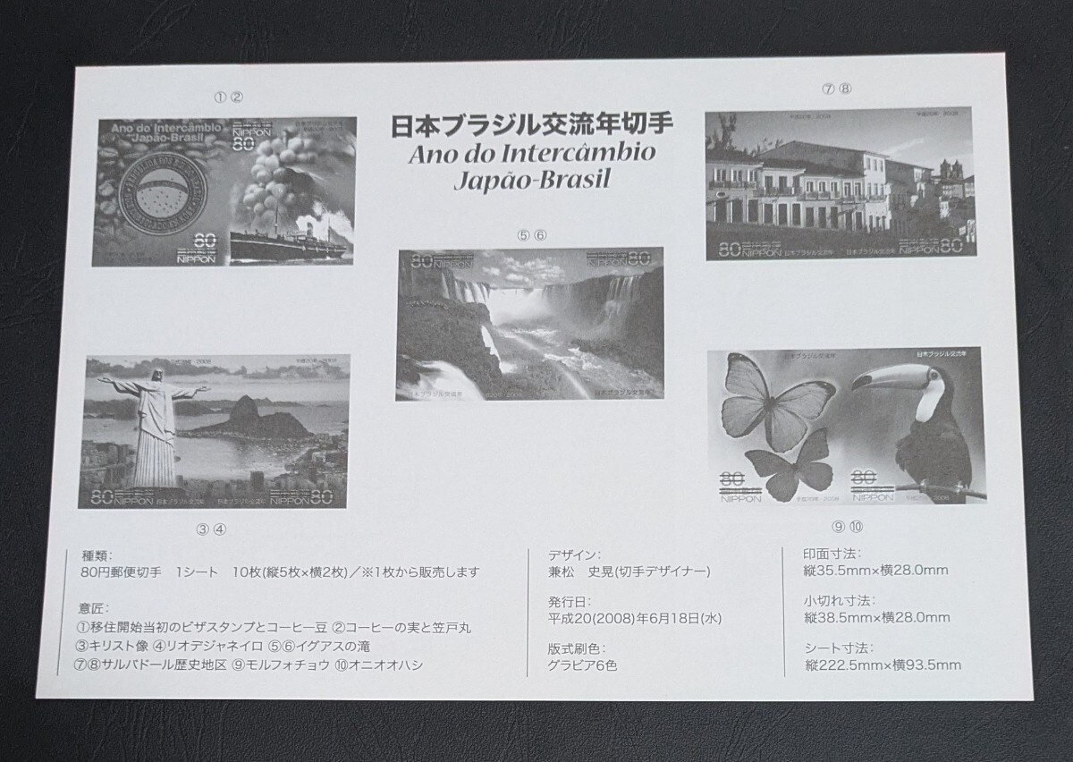 2008年・記念切手-日本ブラジル交流年(解説書付)シート