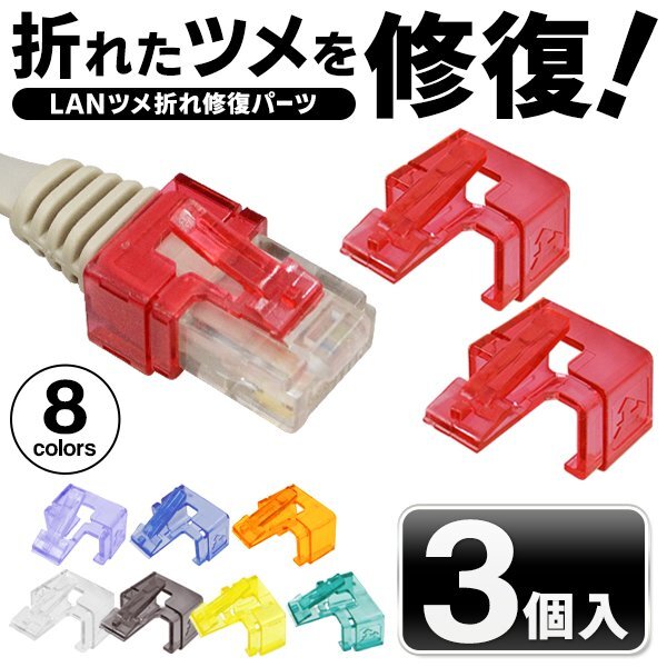 | 工具不要 ワンタッチ装着&修復 LAN爪折れ修復パーツ 同色3個セット オレンジ |