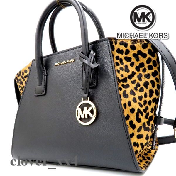 MICHAEL KORS/ショルダーバッグ/ブラック/レザー/2way/アブリル/レオパード/ヒョウ柄/2024/極美品/中古