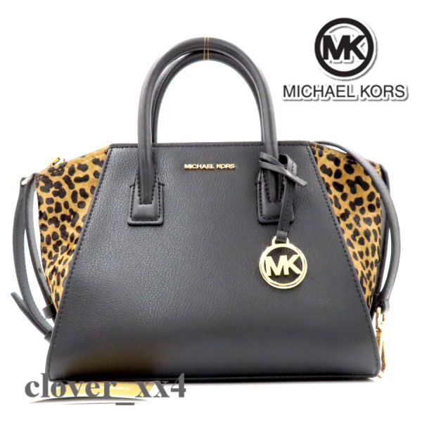【極美品 2024年】マイケルコース ショルダーバッグ 黒 ブラック レザー アヴリル レオパード MICHAEL KORS 2way ハンドバッグ