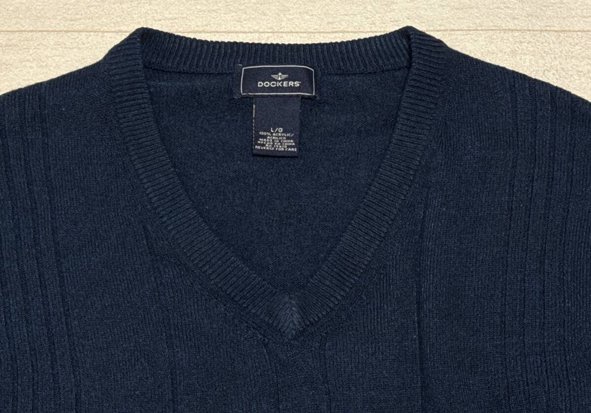 ☆送料無料☆ DOCKERS ドッカーズ USA直輸入 古着 Vネック ニット セーター メンズ L ネイビー系 トップス 中古 即決