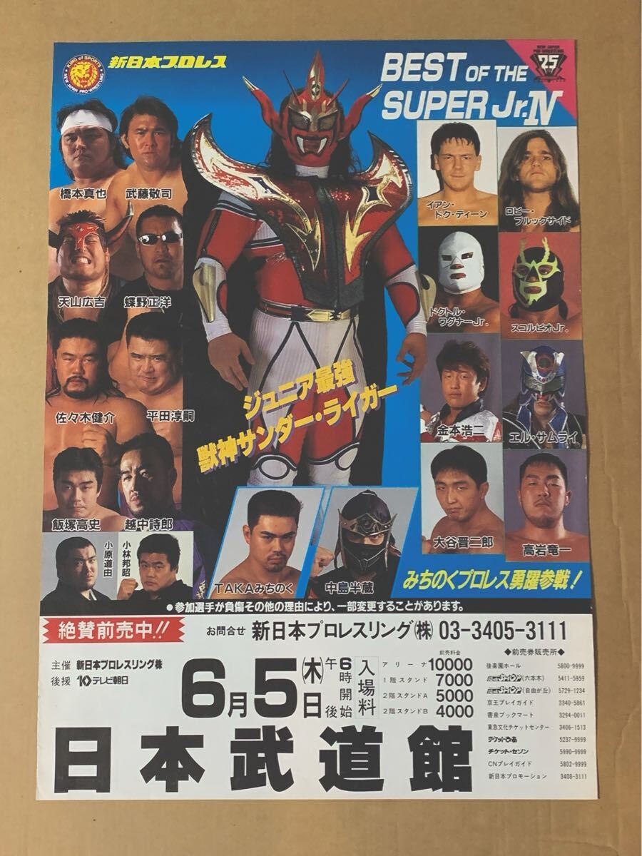 新日本プロレス☆1997年「BEST OF THE SUPER Jr.Ⅳ」日本武道館 ポスター 獣神サンダー・ライガー 橋本真也 武藤敬司 蝶野正洋 天山広吉 他