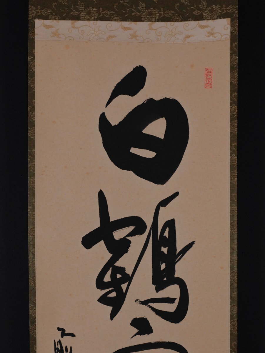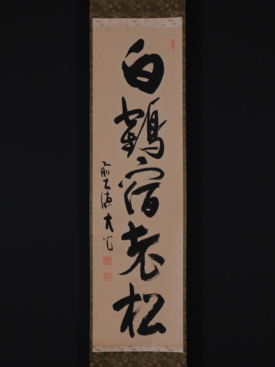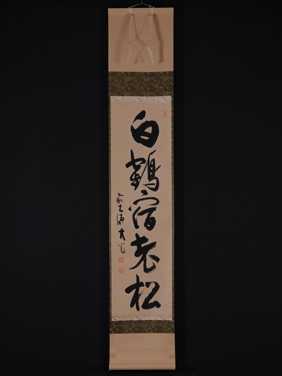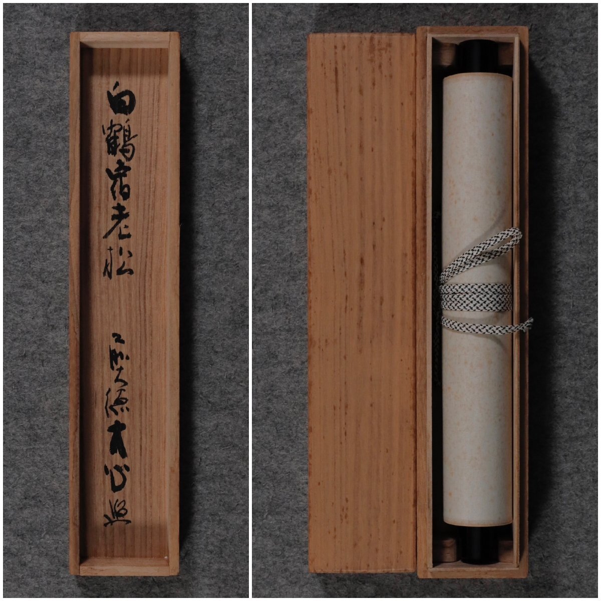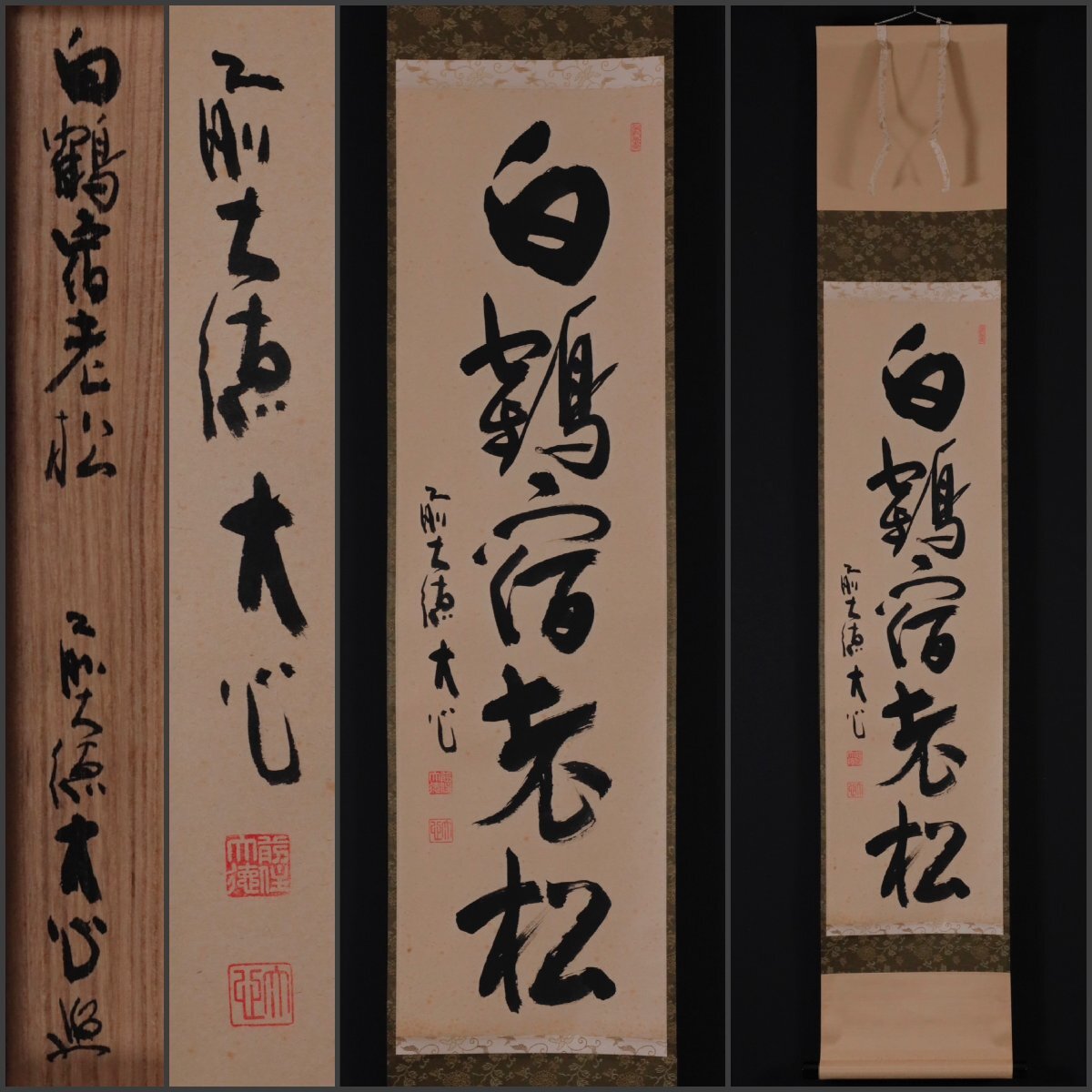 【模写】吉】13016 小室大心 書「白鶴宿老松」 共箱 臨済宗 大徳寺派 長楽寺住職 仏教 岐阜県の人 茶掛け 茶道具 禅語 掛軸 掛け軸 骨董品