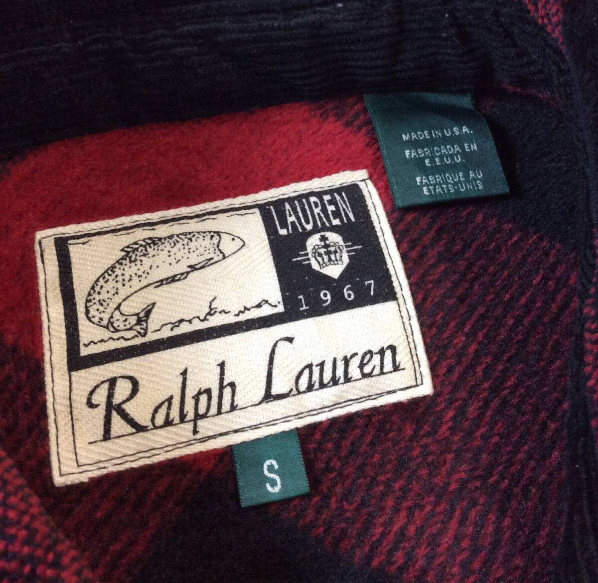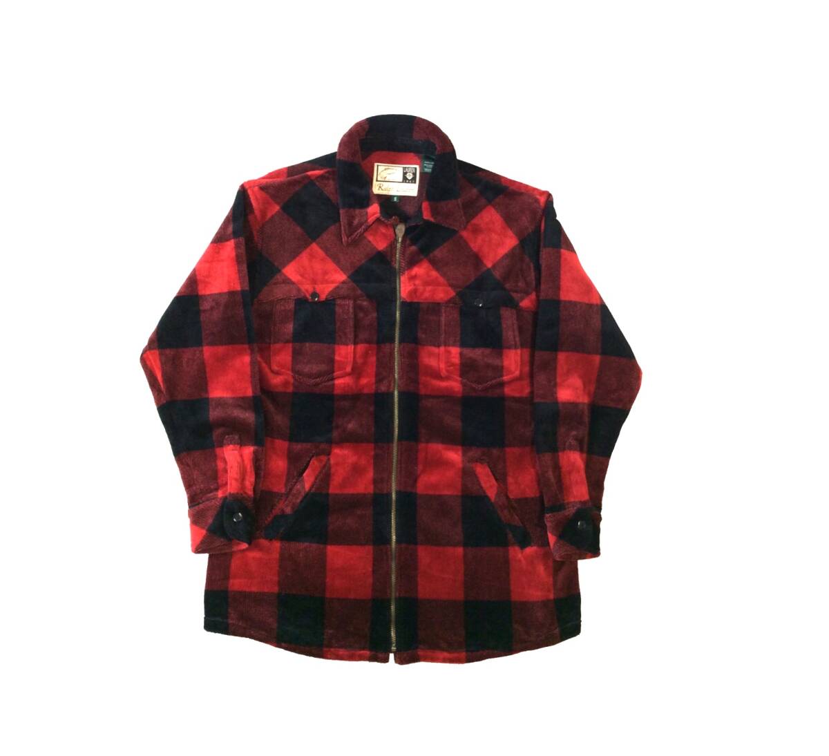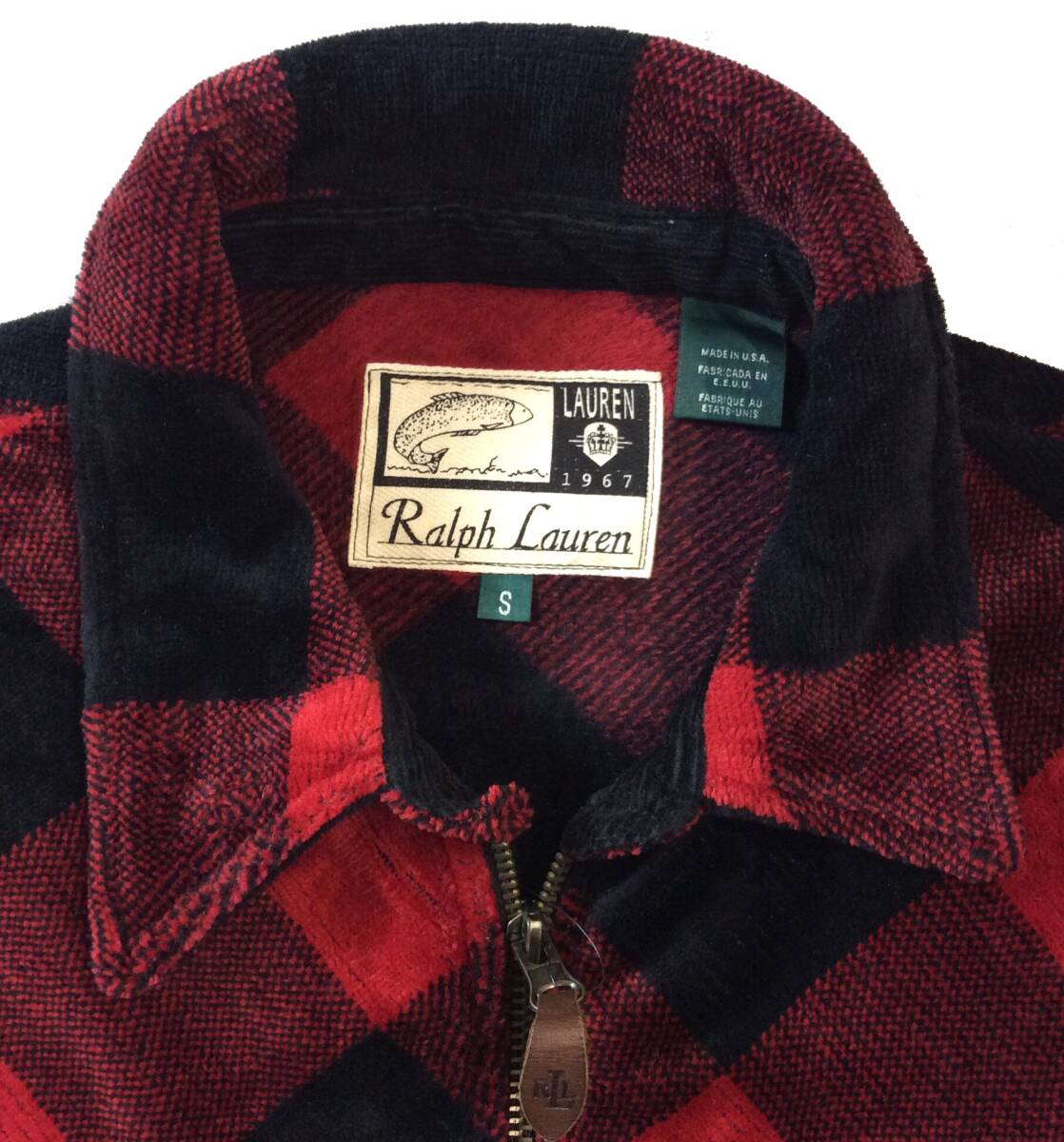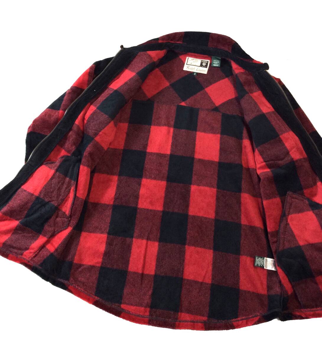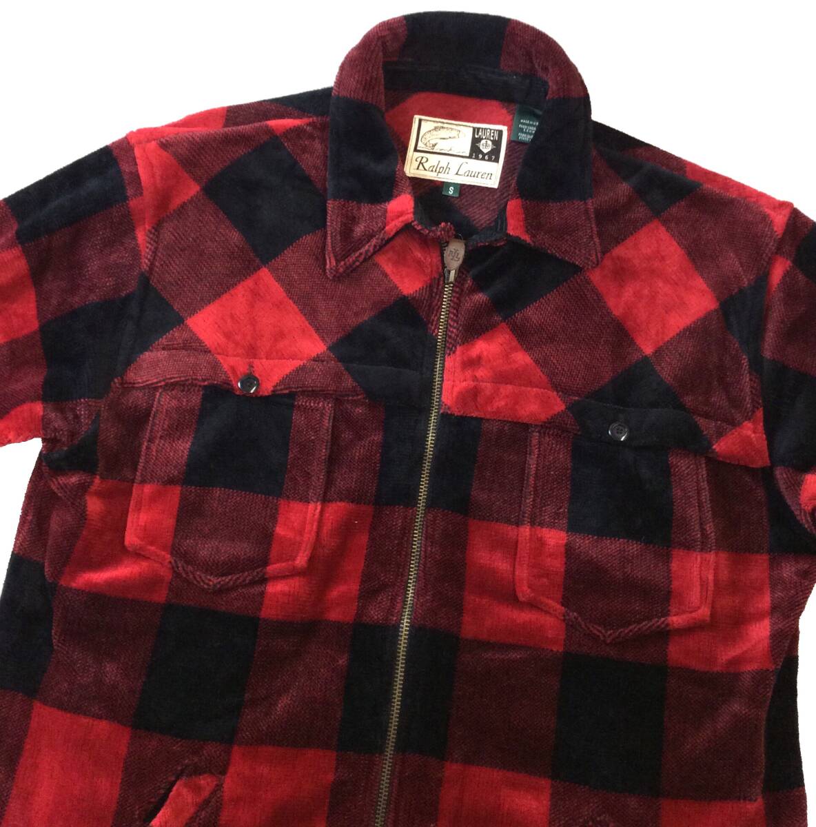 RALPH LAUREN ラルフローレン ローレン USA製 バッファローチェック ジャケット シャツ ジップ パイル/ベロア系 S レディース メンズにも