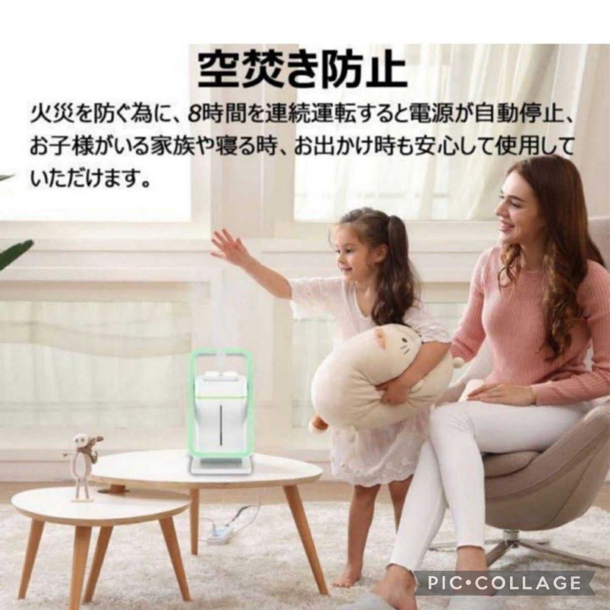 【新登場ダブルノズル加湿器】ダブルノズルを搭載。1時間70mlあたりの大噴霧量を楽しめます。また、超音波霧化効果は従来の加湿器の2.5倍になります。霧化する時大量のマイナスイオンを放射と共にフォルムアルデヒド、除菌 一酸化炭素、細菌など有害物質を取り除きます。空気を綺麗に浄化させ、病気も予防できる加湿器です。