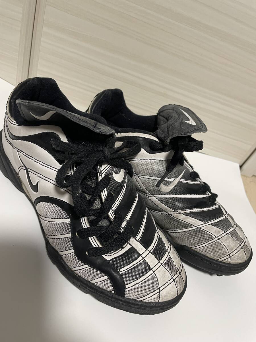 NIKE ナイキ サッカー フットサル トレーニングシューズ 23.5㎝ 白×黒(USED) ジュニア、スポーツ、少年団、部活、クラブ、フットボール