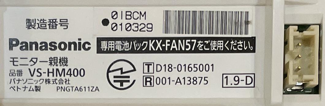 パナソニックワイヤレスドアモニター・ドアモニ/VS-HC400-W用モニター親機・VS-HM400-Wです^^。