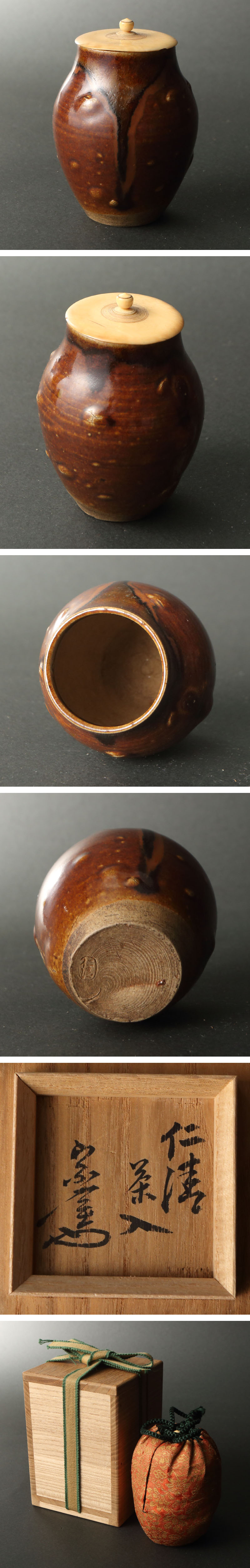 委託HK◇時代 仁清茶入 円能斎書付 ※仕覆添え(茶道具 陶磁器 陶芸 京焼 清水焼 野々村仁清 濃茶 裏千家 家元 今日庵 茶陶 茶事 )