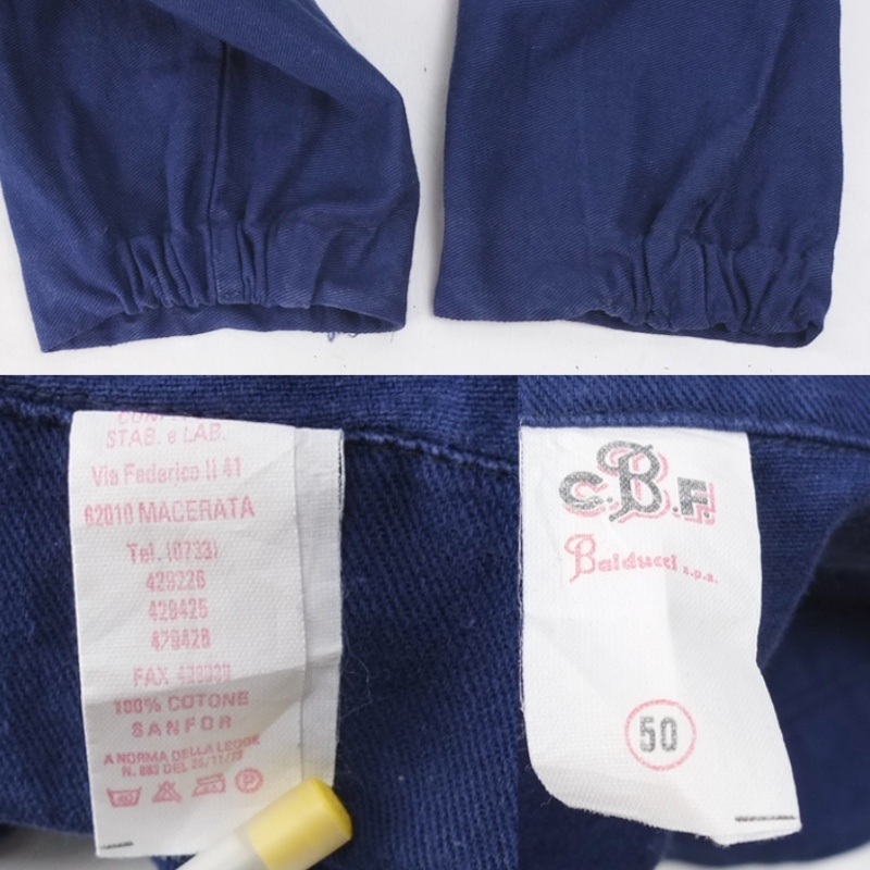 袖口の一部だけゴム入り。袖口の内側一周、ゴムの色落ちあたりが出てるので、おそらく前所有者がすぼまった袖口をゆるくするため、ゴム入れ替えたか改造したものと思います。袖口幅14cmぐらいのゆるめ。