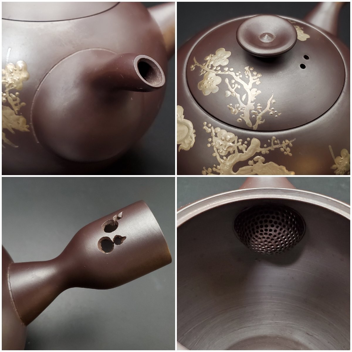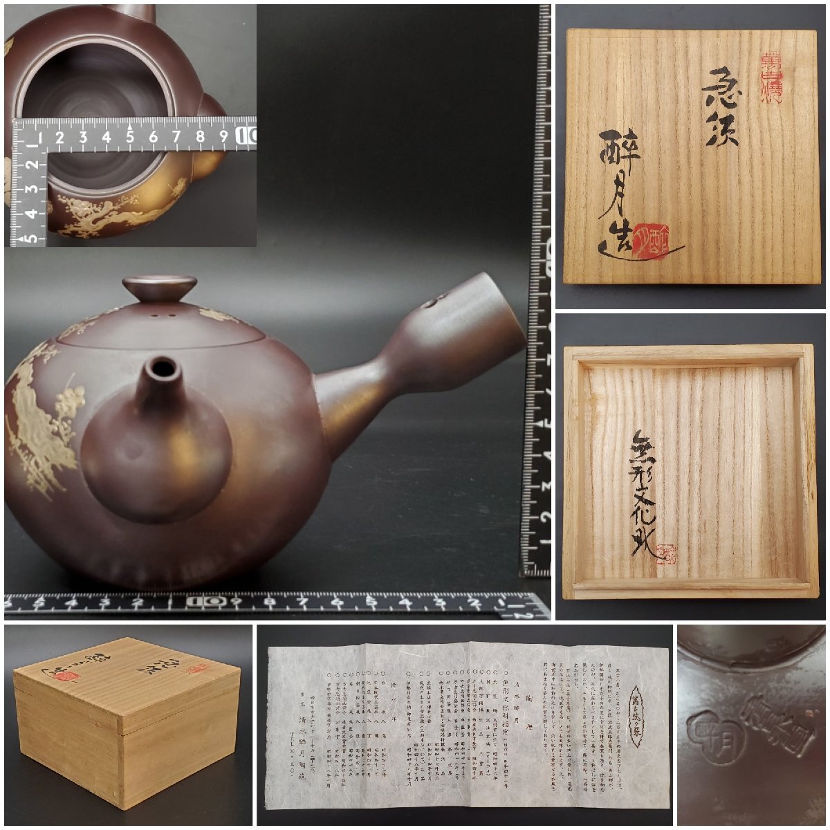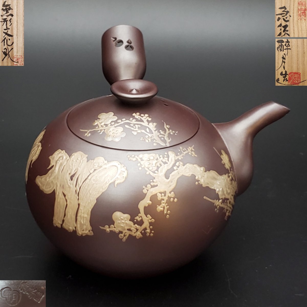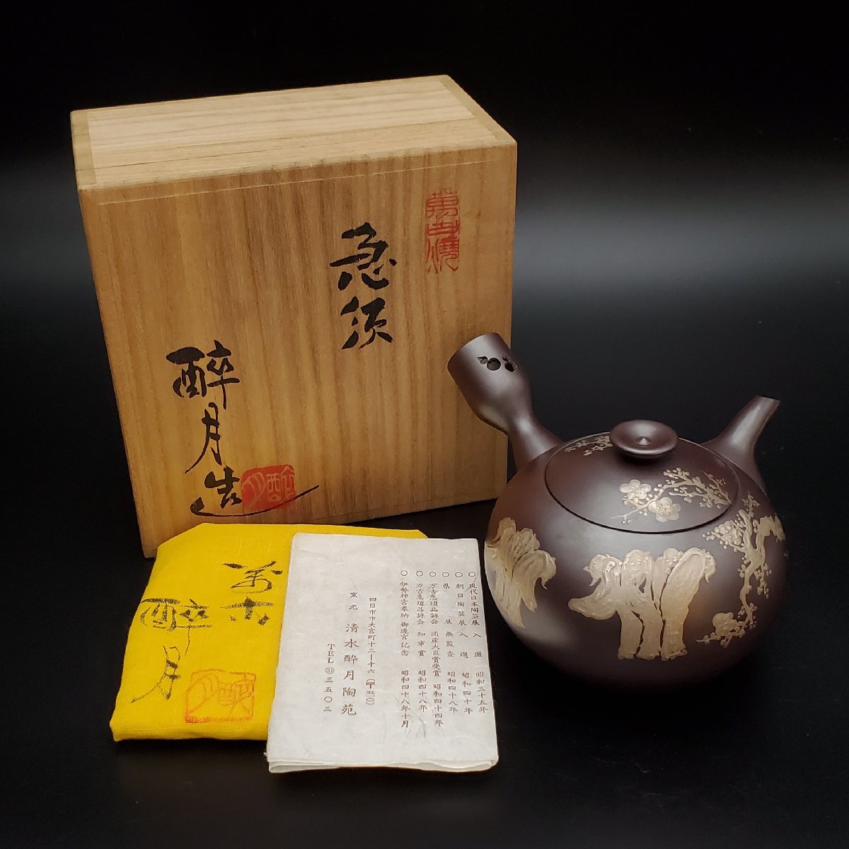 【宝蔵】萬古焼 無形文化財 清水酔月 醉月陶苑 梅文急須 茶注 高さ約10cm 煎茶道具 共箱