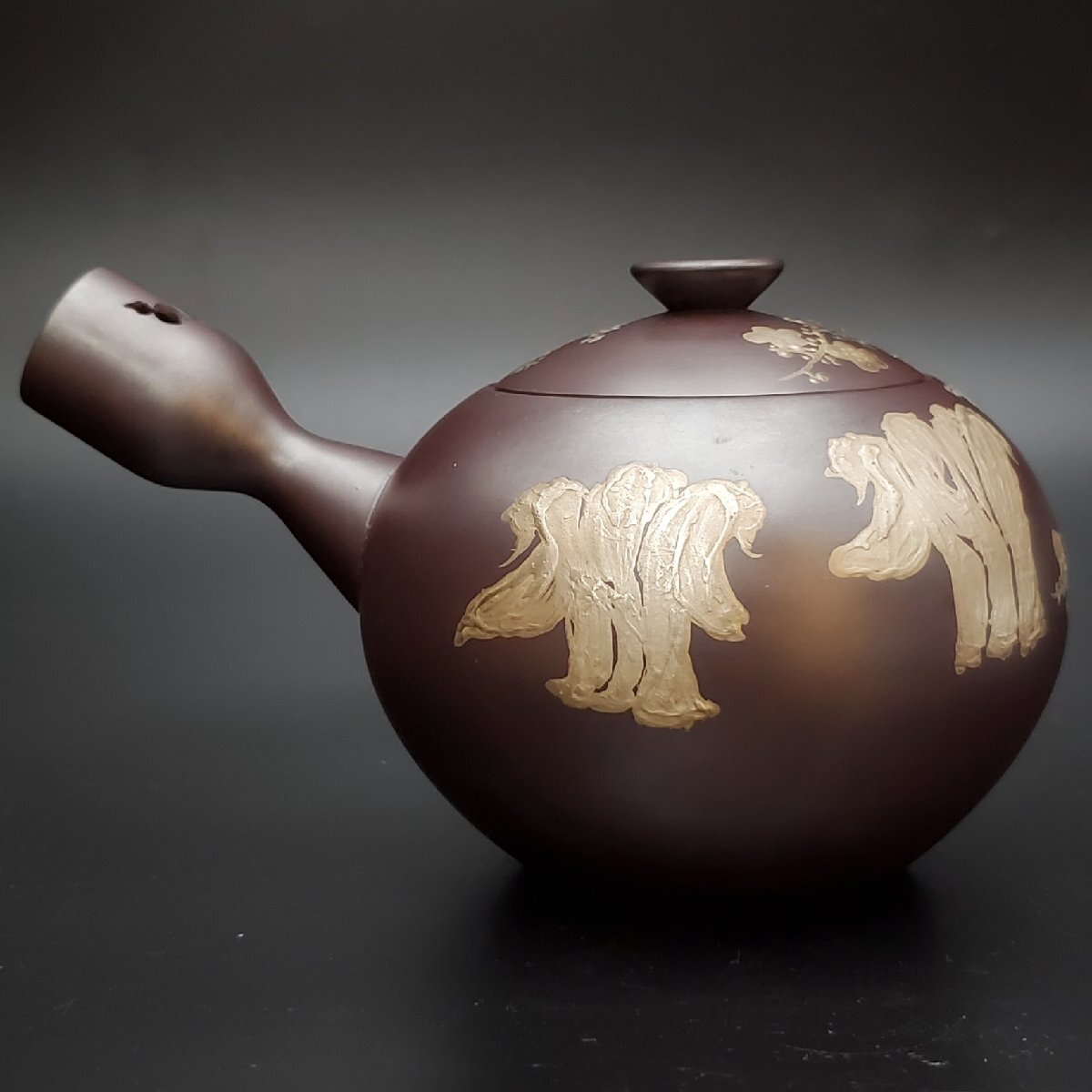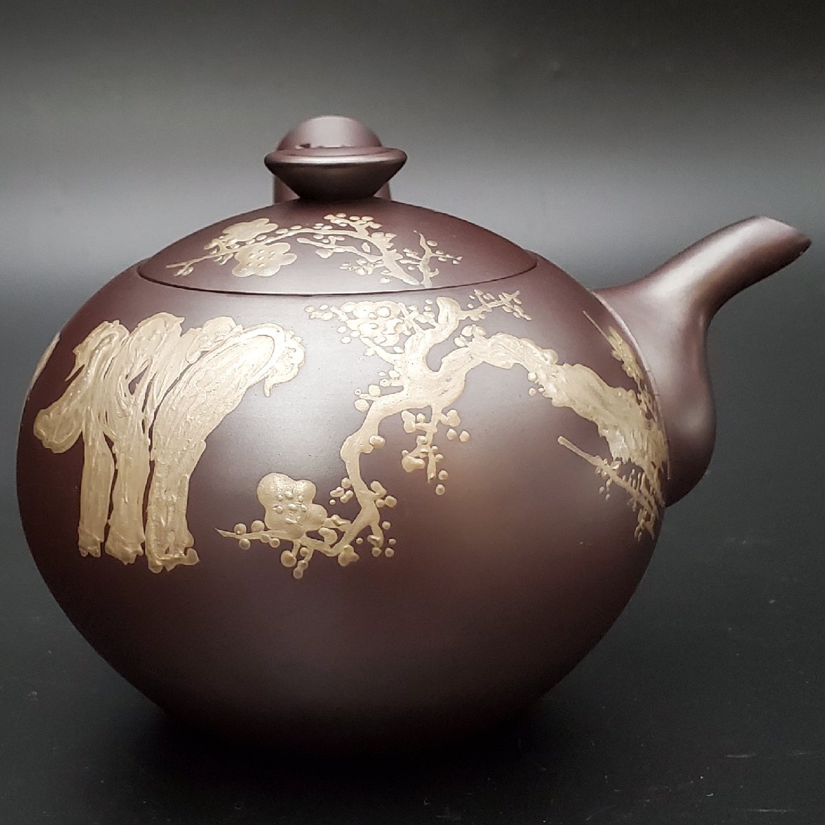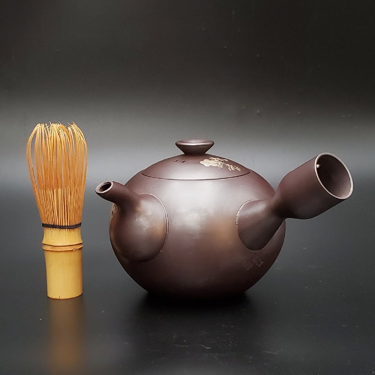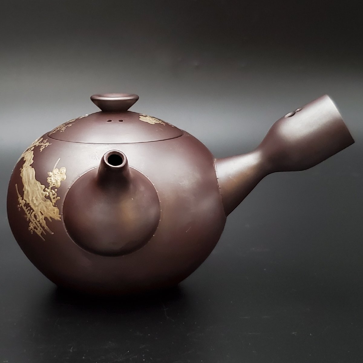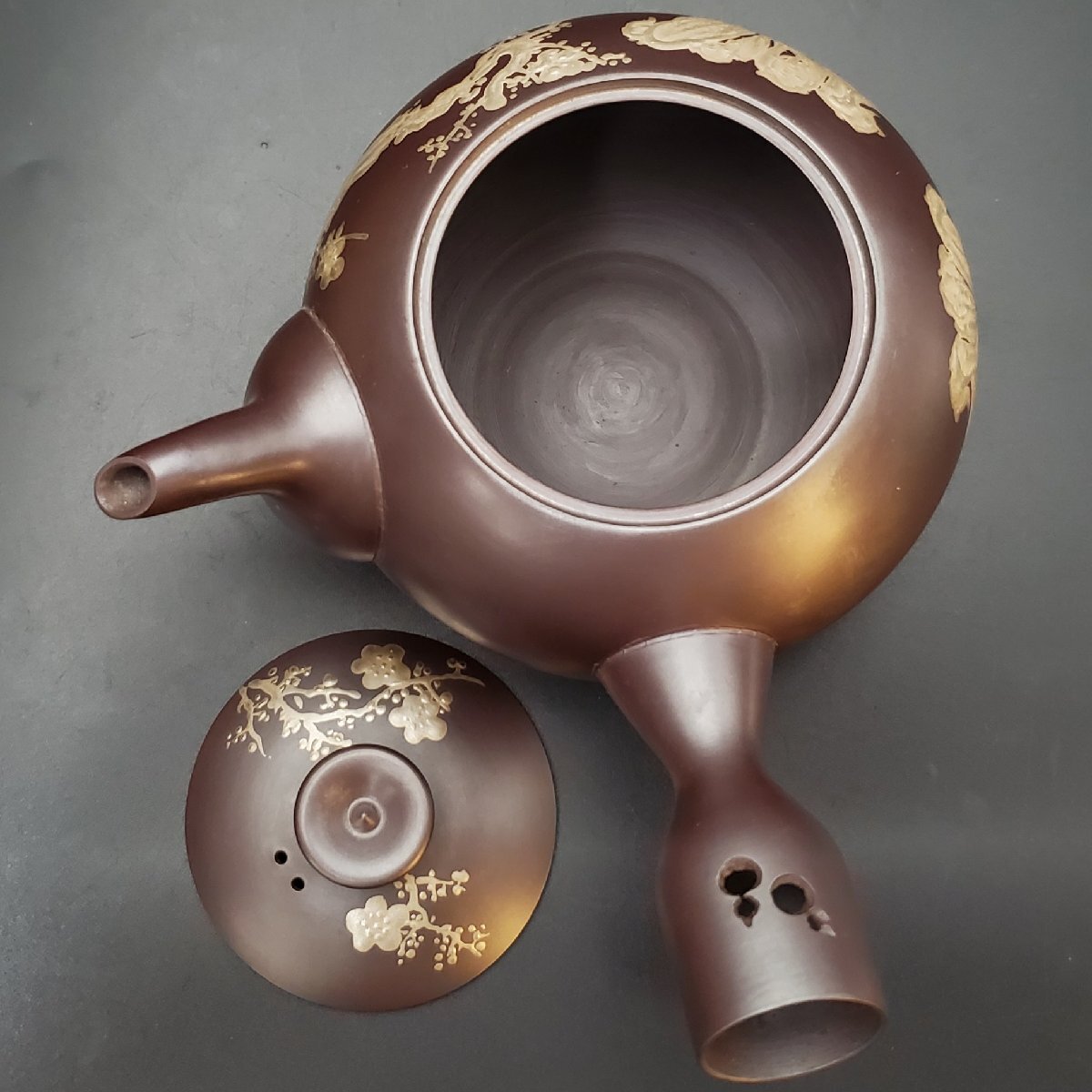 【宝蔵】萬古焼 無形文化財 清水酔月 醉月陶苑 梅文急須 茶注 高さ約10cm 煎茶道具 共箱