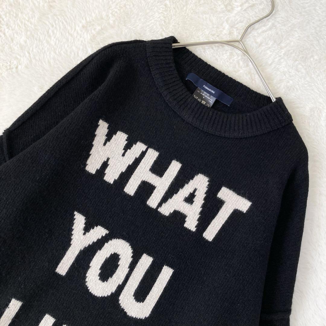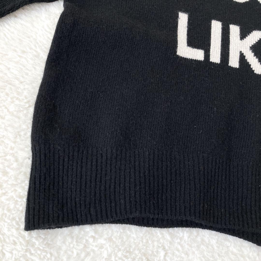 インターシャ編みというニットで、ふんわり柔らかな素材です。パフスリーブで、袖が立体的なシルエットに作られています。大きなロゴが可愛いです^^