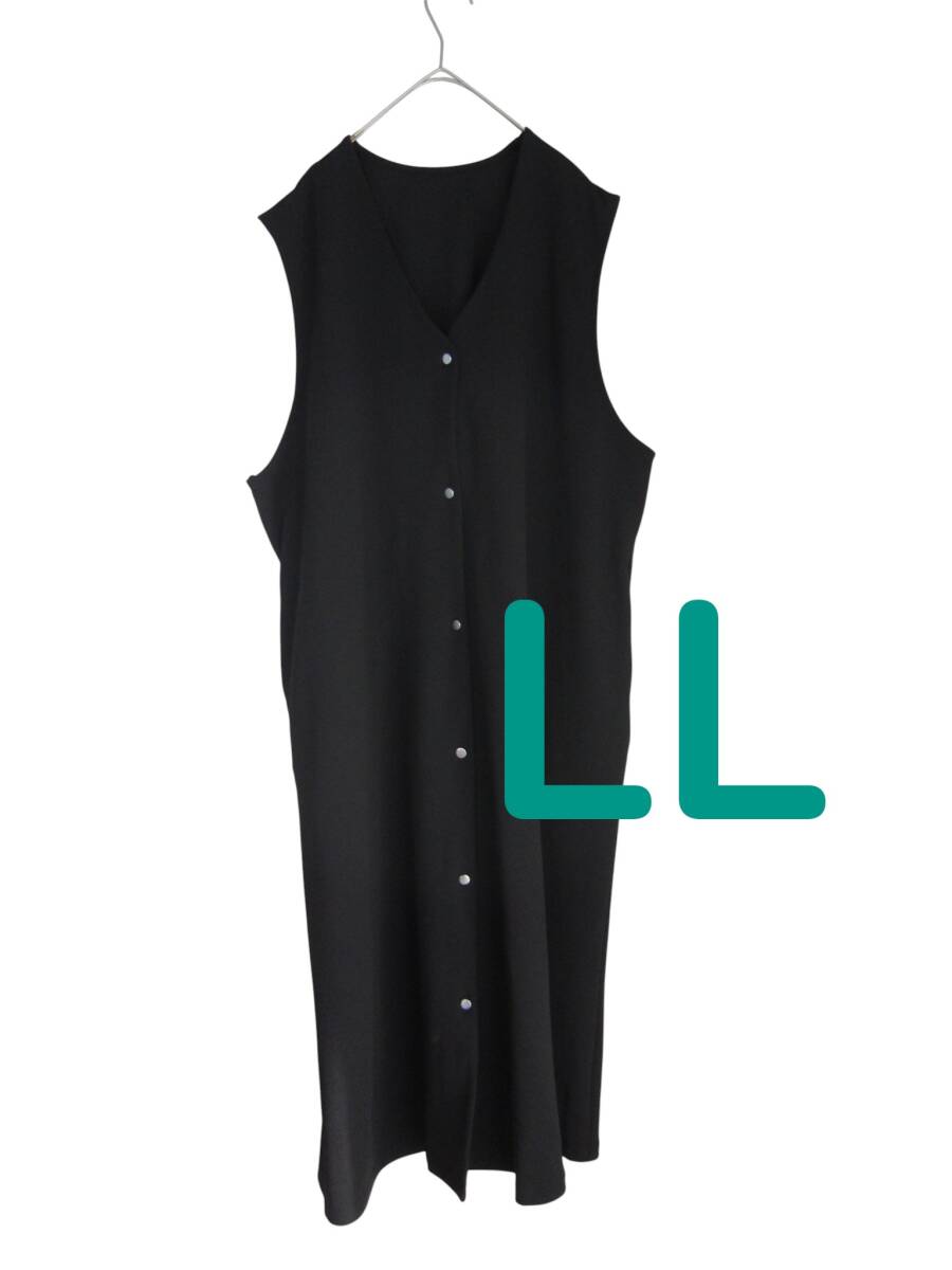送料無料 T86 美品 【LL】 ~3L・4L着用可 ブラック ノースリー ジャンバースカート 羽織にも 大きいサイズ ゆうパケットプラ
