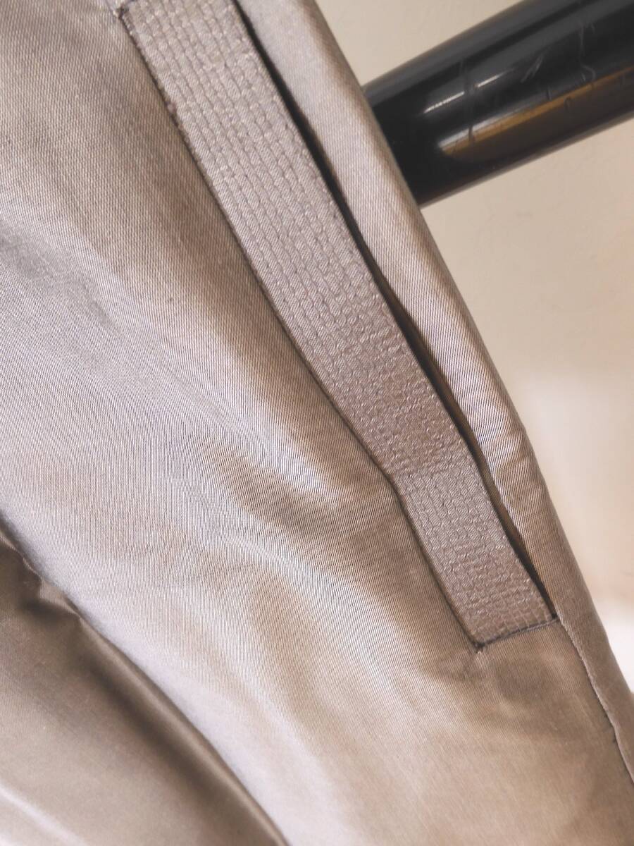 衿、前立て、ポケットなどに何重かのミシンキルトをしています。