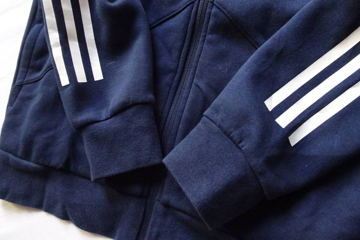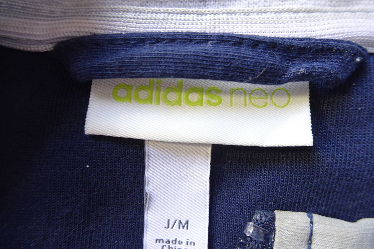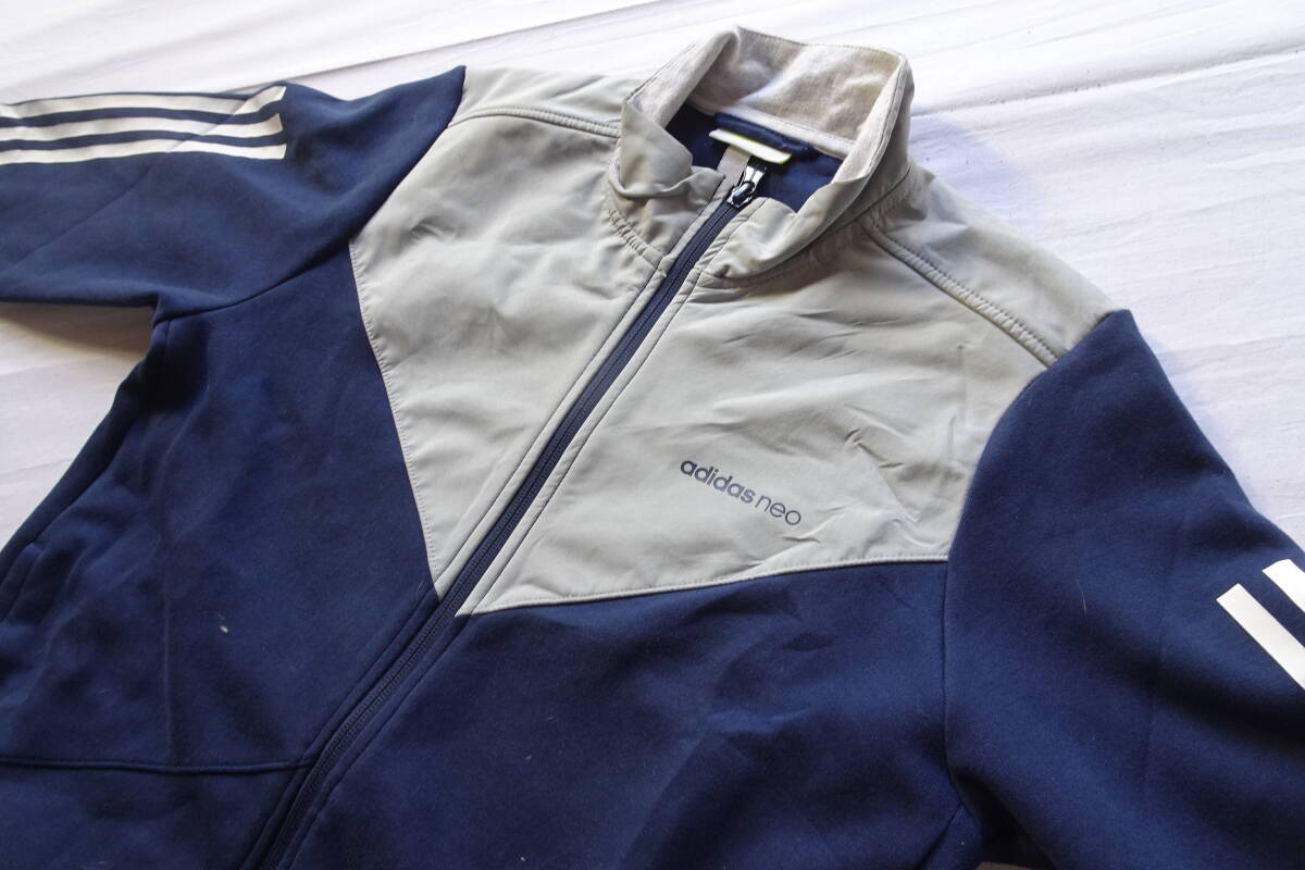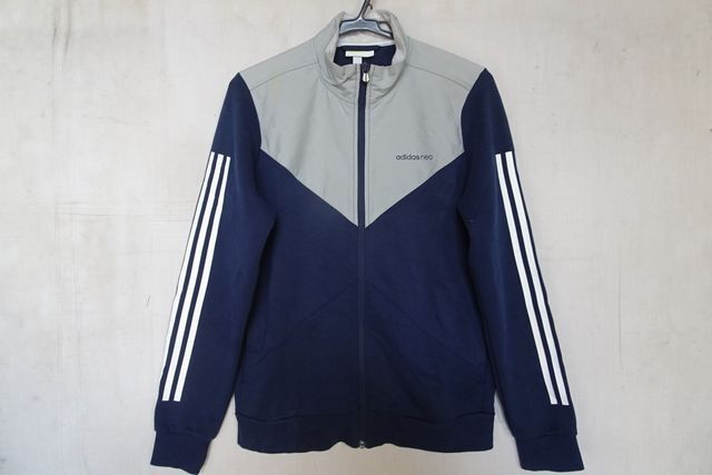 adidas NEO/アディダス/長袖トラックジャケット/スウェット素材/前ジップアップ/白3本ラインプリント/紺/ネイビー/Mサイズ(10/24R7)