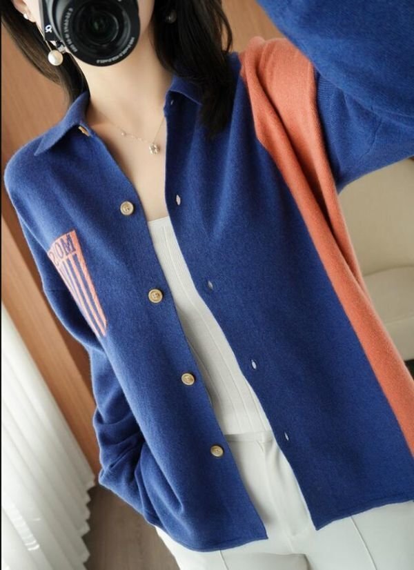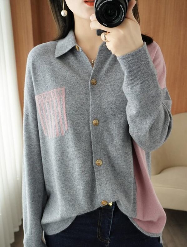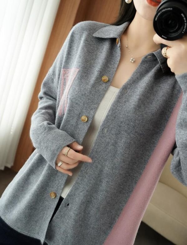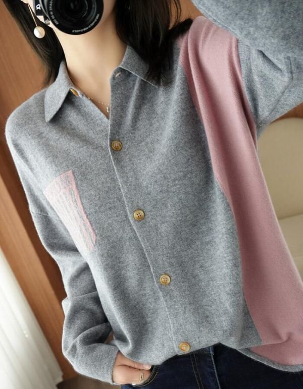 秋冬 新品 おしゃれ ミンクカシミヤ混 配色大人 暖かい ルーズニットセーター ニットトップス★灰/XLサイズ