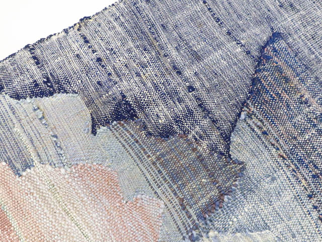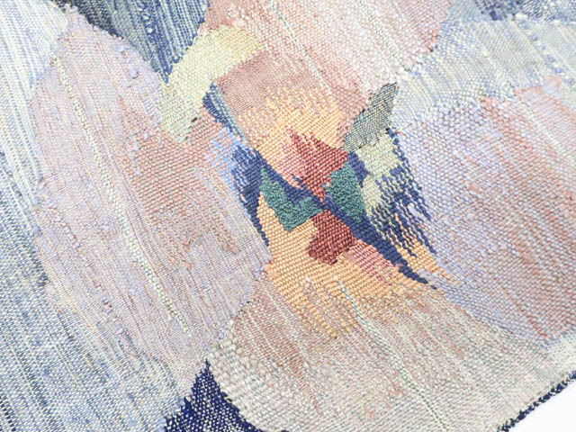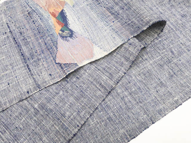 リサイクル商品のため、全体の所々にシミがございますが、ご使用可能なでございます。 地色は紺です。 1枚目の画像が近いお色かと思われます。 素材は正絹です。 |