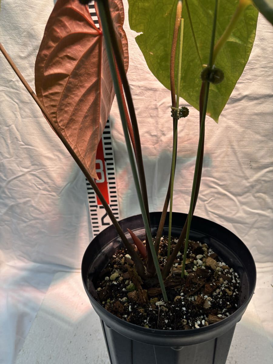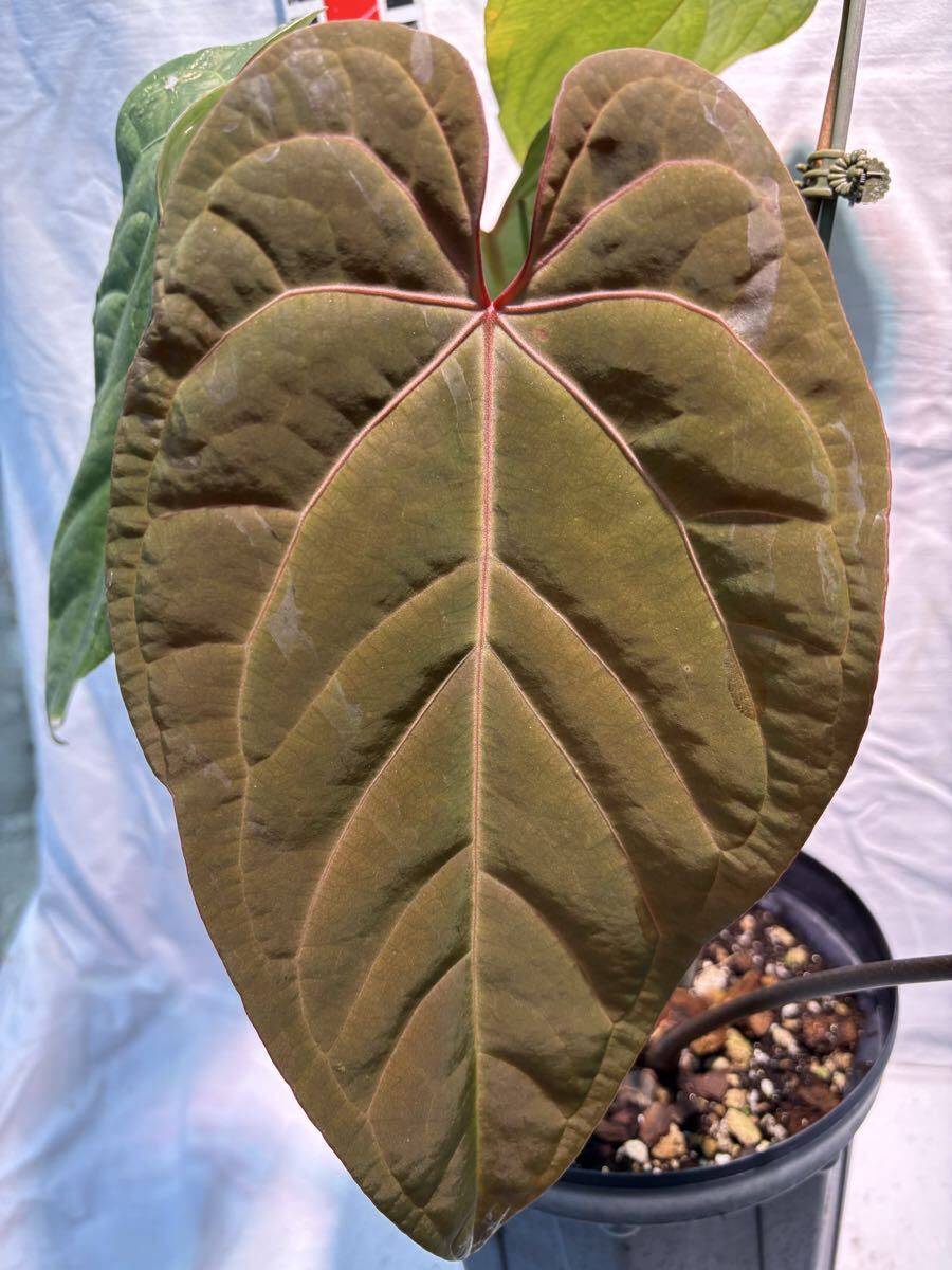 インドネシアの実生は不確実要素が強くけんえんされることが多々あるのは事実ですが、その環境が未知なるアンスリウムを作り出すこともあります。それがこの品種です。もちろん親は分かりませんが、このナローでしっかり赤くなる個体のポテンシャルは未知数です。