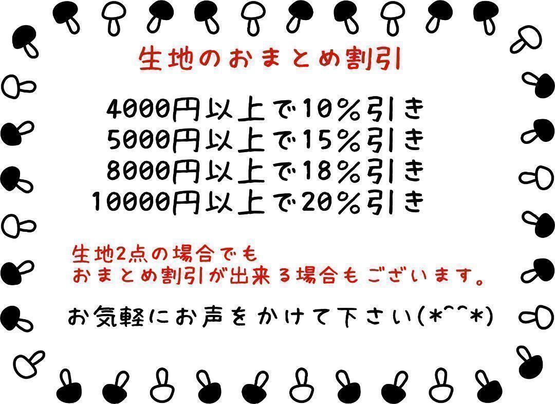 生地2点でもおまとめ割引が出来る場合もございますので、お気軽にお声をかけて下さい(*^^*)