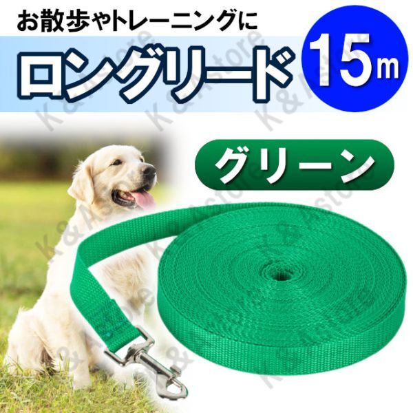 ロングリード 15m 犬用 ドッグラン ペット 散歩 小型犬 中型犬 大型犬 長い リード 絡まない しつけ トレーニング グリーン 緑