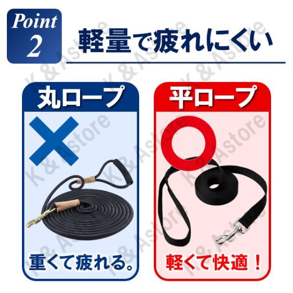 当商品は丸ロープと比較し軽量でワンちゃんも飼い主さんも疲れにくいです。