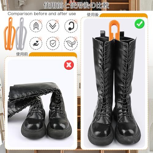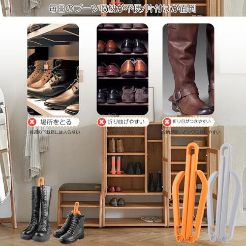 [RUITING] ブーツキーパー クリップ 折りたたみ式 サポートブラケット2個セット ブーツ形状リテーナー 長靴 短靴 兼用可
